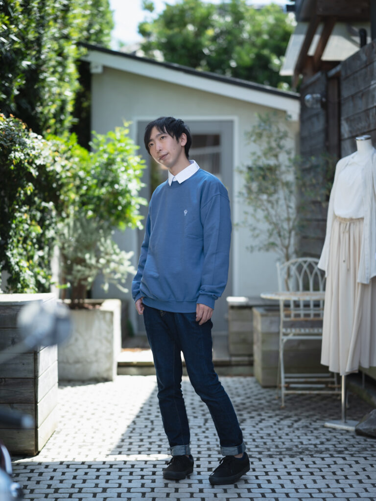 K.M sweat BLUEを使用したコーディネート。 STAFF岡 167cm