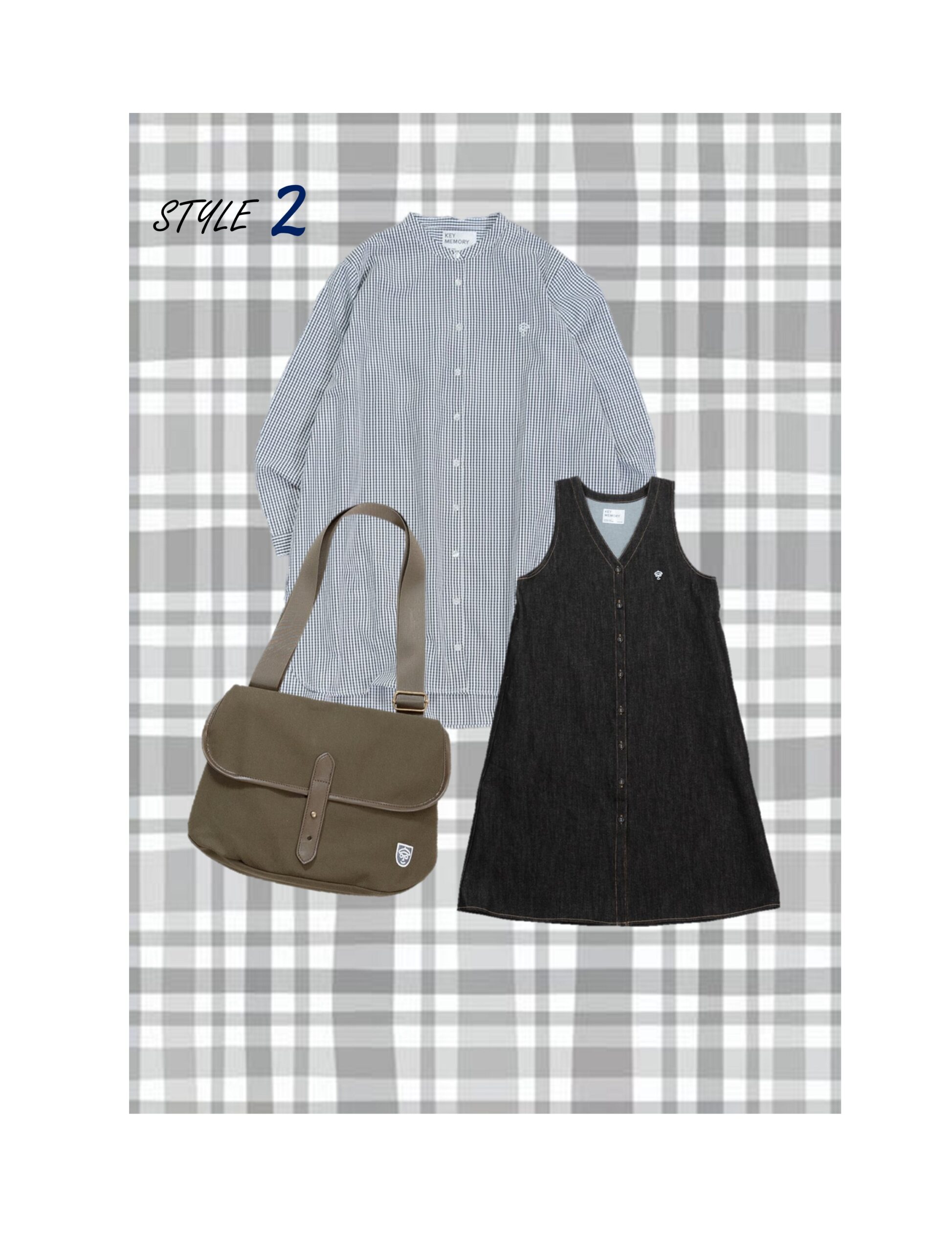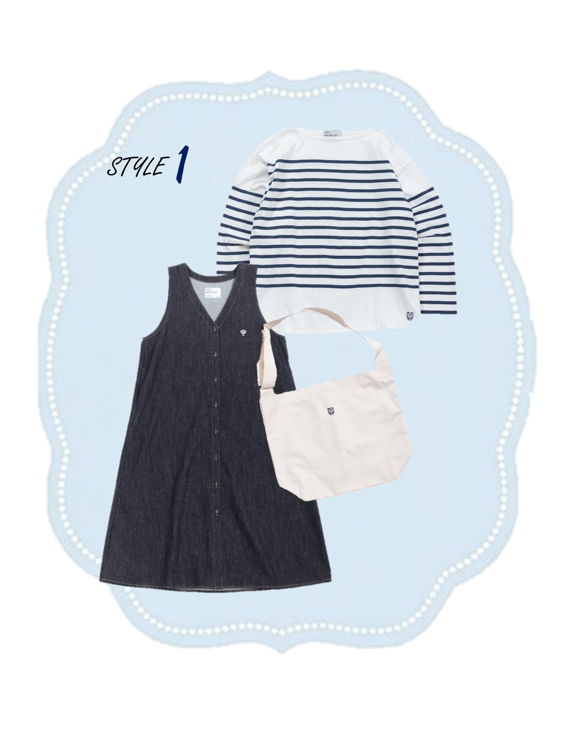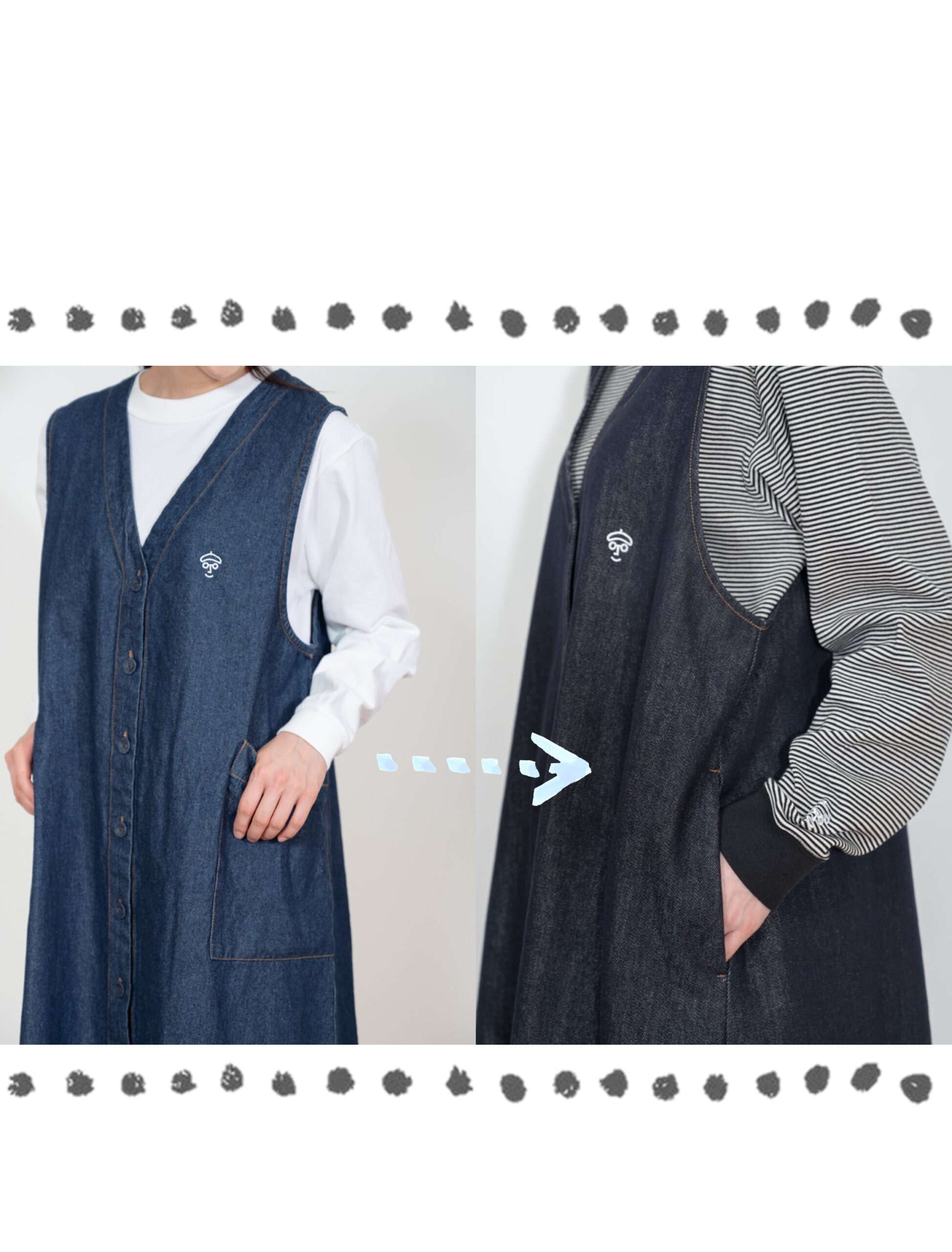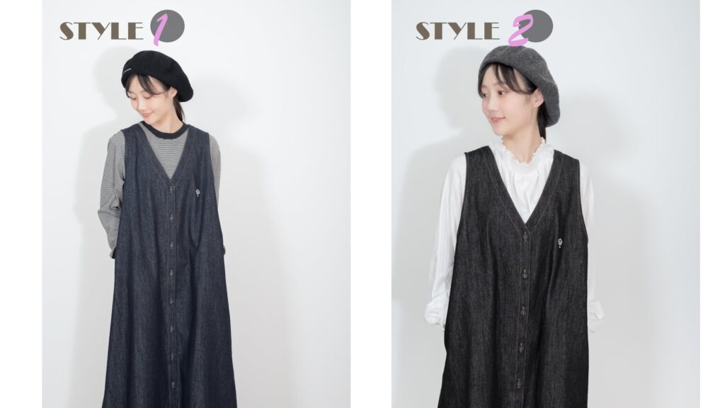 新作のDenim jumper dressを使ったコーディネート2つをご紹介します。
