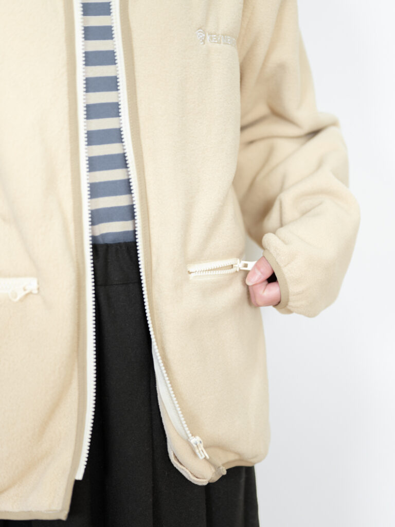 シンプルなデザインの中に、パイピングやジップの配色で遊び心をプラス!フリース素材は軽量で暖かく、動きやすいため、外出時はもちろん、おうち時間にもさっと羽織って快適にお過ごしいただけます。