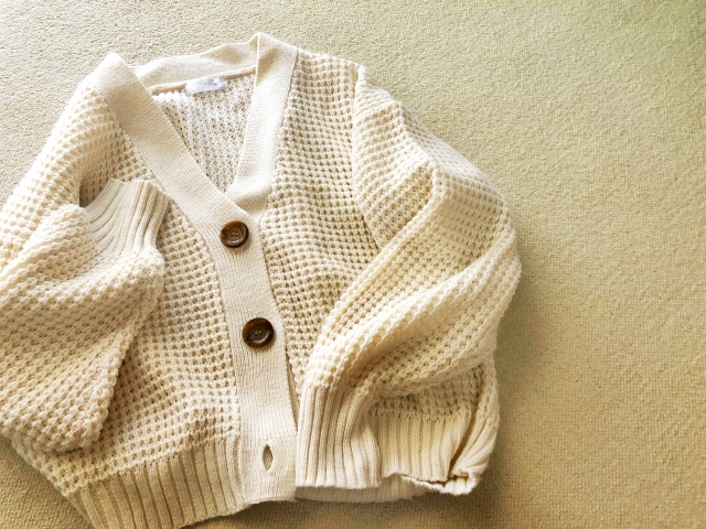 ピンクのカーディガンは春らしい着こなしが叶う、2月に春を感じるのにぴったりなアイテムです。