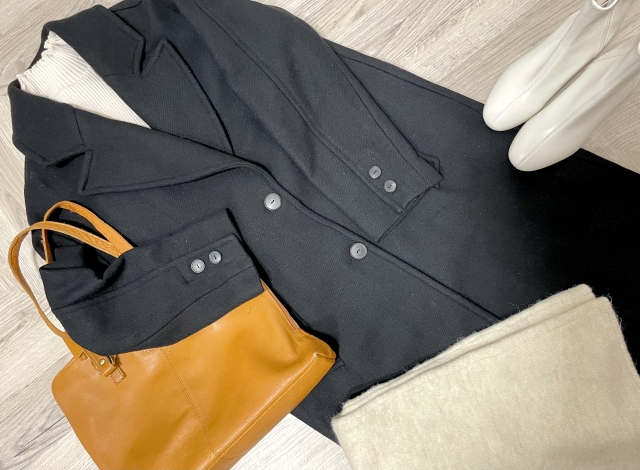 このコーディネートにブラックのロングコートを羽織ると、大人っぽさを出すことができます。