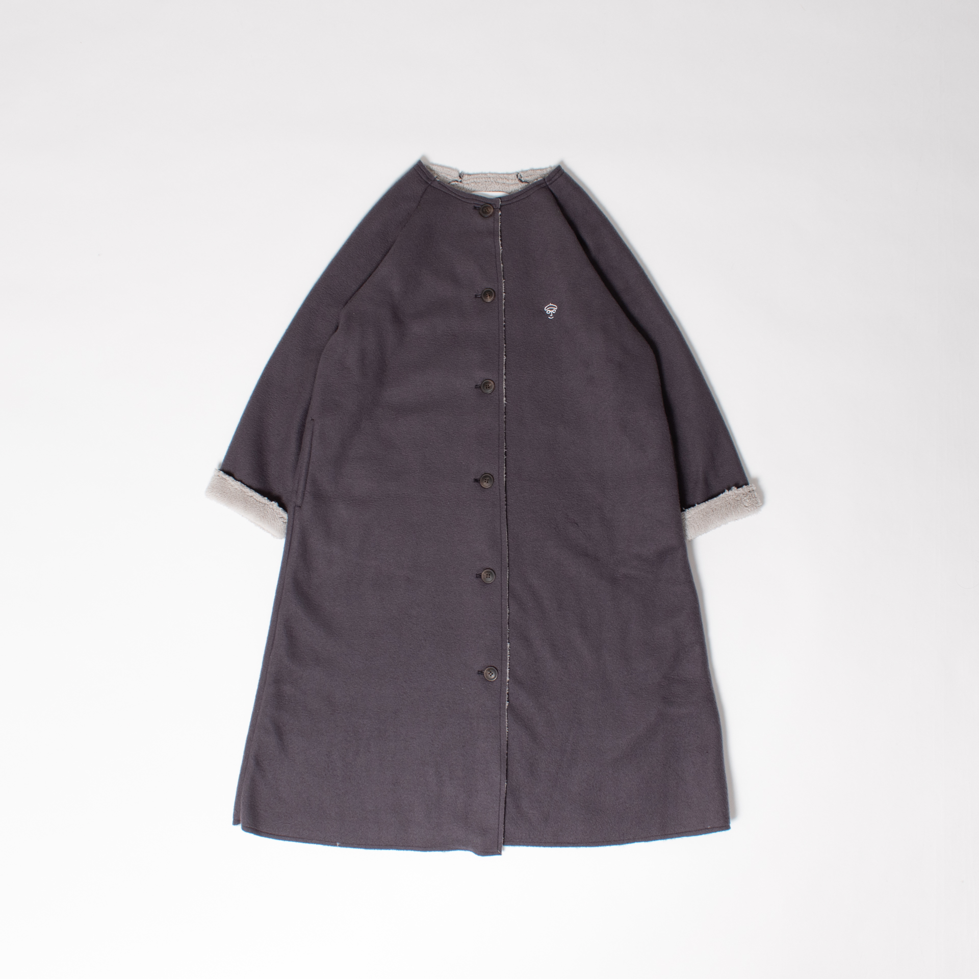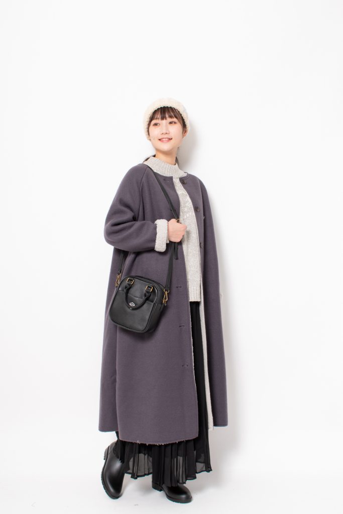2022年福袋限定。ノーカラーの裏ボアロングコート。シンプルな襟元はボリュームアップになりがちなボアコートでもすっきりと見せてくれる効果があります。裏地は腕までしっかりとついており、カジュアルでも綺麗目な格好にもあう万能コートです。今回の目玉商品は本当にコスパ抜群です!