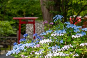 ちなみに、たまに見かける白い紫陽花は、もとから色素をもたない品種のため、土壌の影響を受けず、何色にも染まらない紫陽花となります。