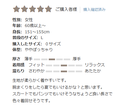 どんな商品と組み合わせて着用しているのか、着心地、サイズ感など