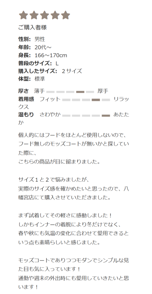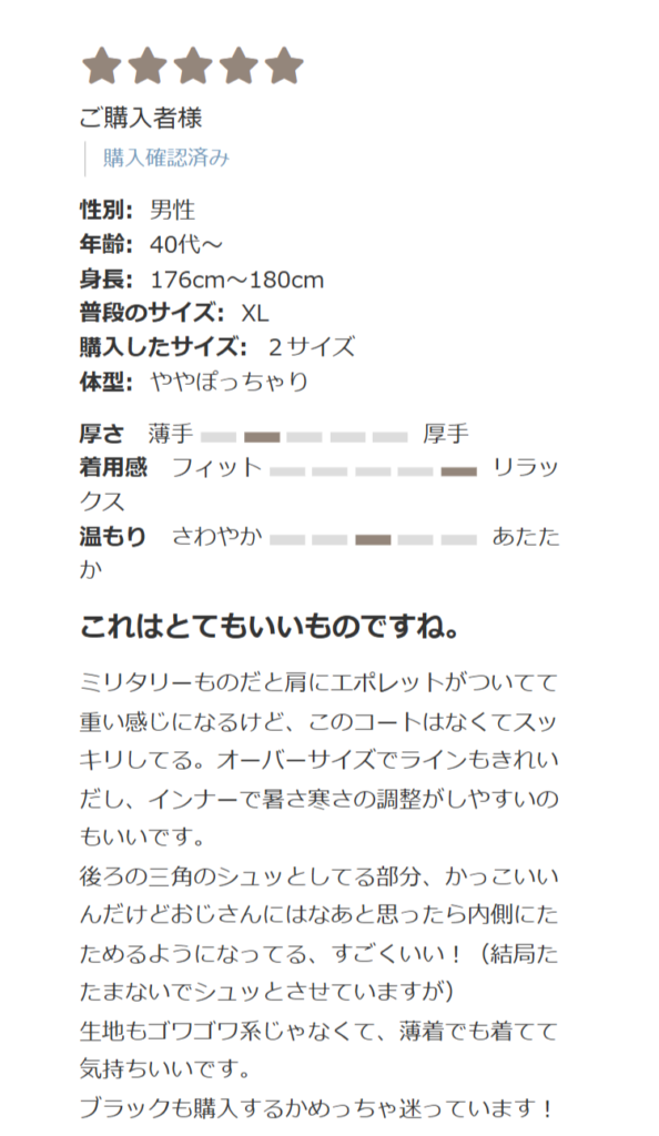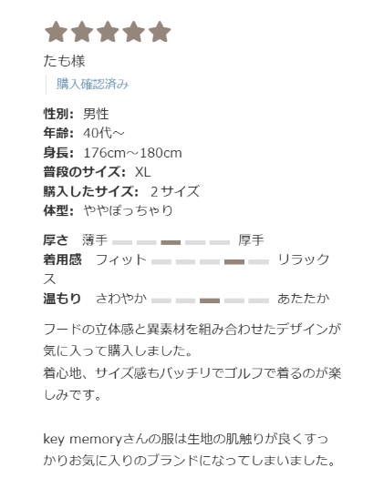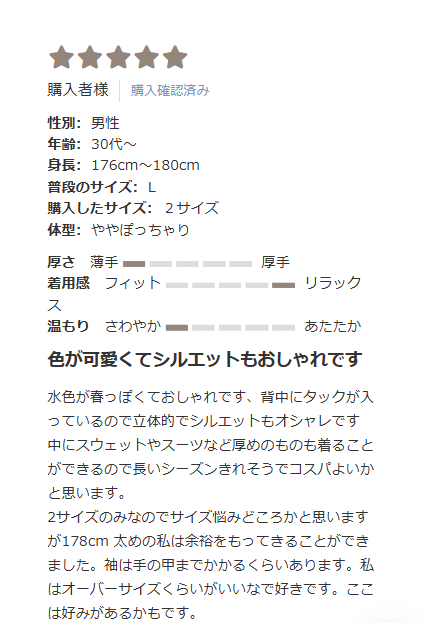 どんな商品と組み合わせて着用しているのか、着心地、サイズ感など
