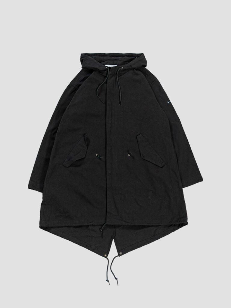 裾のドローコードや袖口リブでシルエットを整え、リラックス感がありながらもすっきり見える一着です。