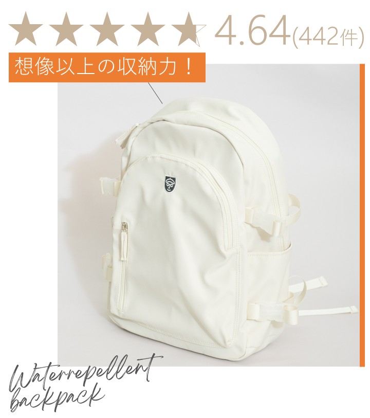 前面の小物などが入るポケットが2つ。中についているセパレートポケットが3つ。サイドのペットボトルポケットが2つ。背面の隠しポケットが1つ。合計8つのポケットで、リュックの中身も探しやすく、すっきりと収納していただけます◎