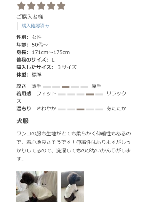 柔らかい生地で伸縮性もあるので、ワンちゃんにも着用させやすかったというお声もいただいております。