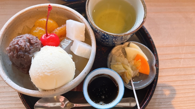 看板メニューは、「クリームあんみつ」です。