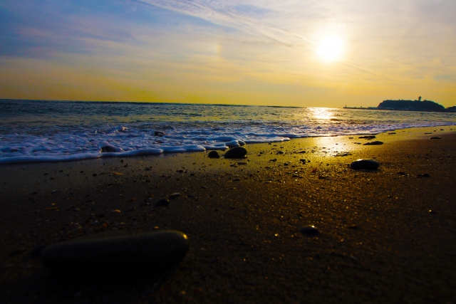 甘味でパワーチャージしたあとは、無心庵のすぐ傍にある「由比ヶ浜海水浴場」で、美しい夕日を鑑賞しましょう。
