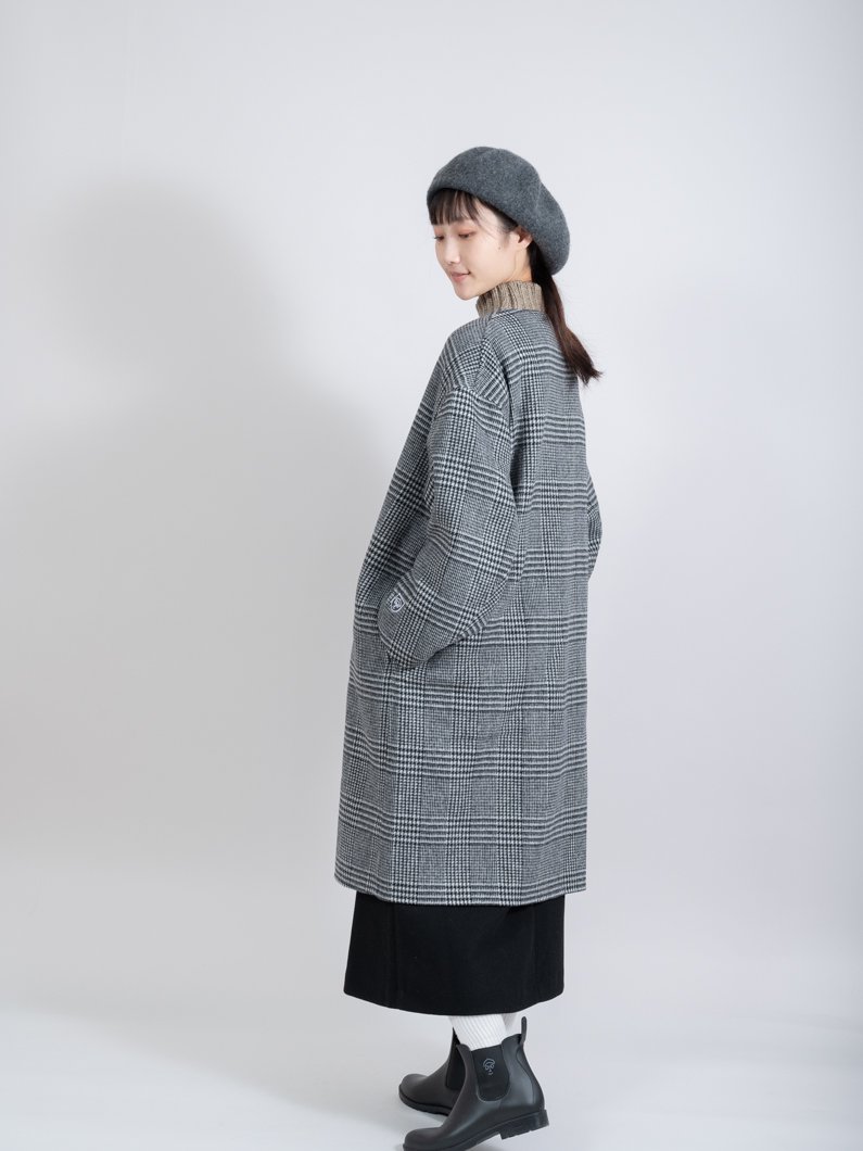 ロングコートは、ブラックやネイビーなどのダークカラーだとフォーマルな印象が強まるので、ベージュやチェック柄のものを選べばカジュアルに仕上がりますよ。