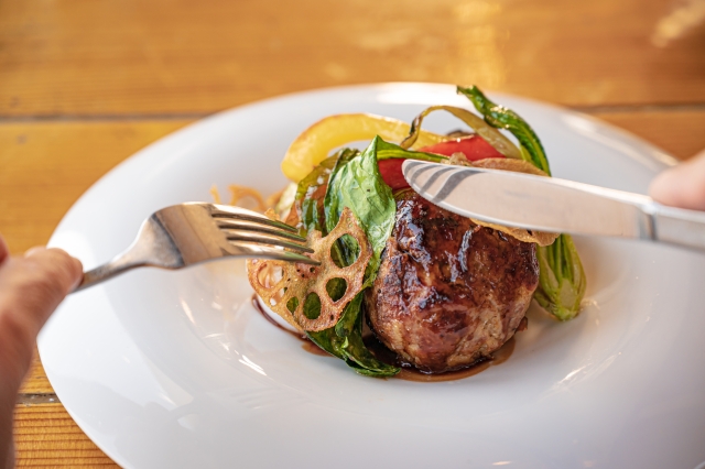 そんな佐助カフェのランチタイムには、牛肉100%のハンバーグや、季節の野菜・フルーツをふんだんに使ったサラダを楽しめます。