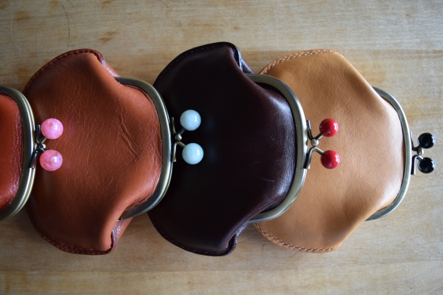 がま口財布をはじめ、メガネケースやカードケースなど、すべて手づくりの商品が取りそろえられています。