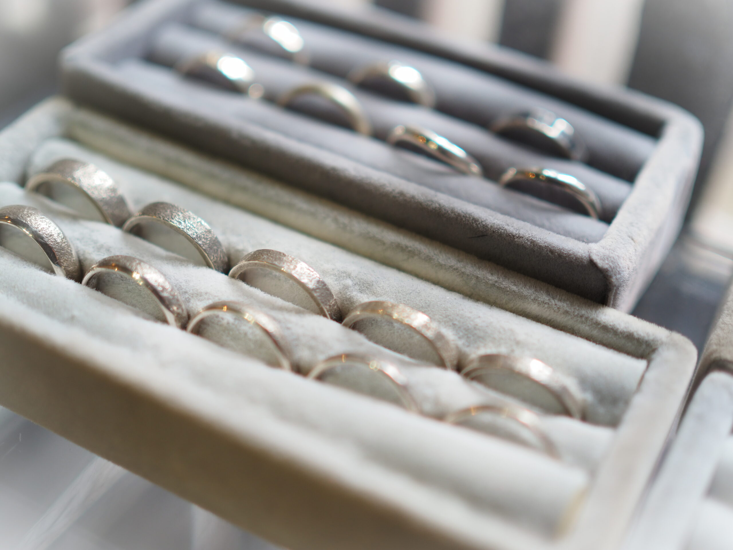 専任スタッフの丁寧なサポートのもと、デザインや素材を自由に選びながら、結婚指輪を作り上げていきます。