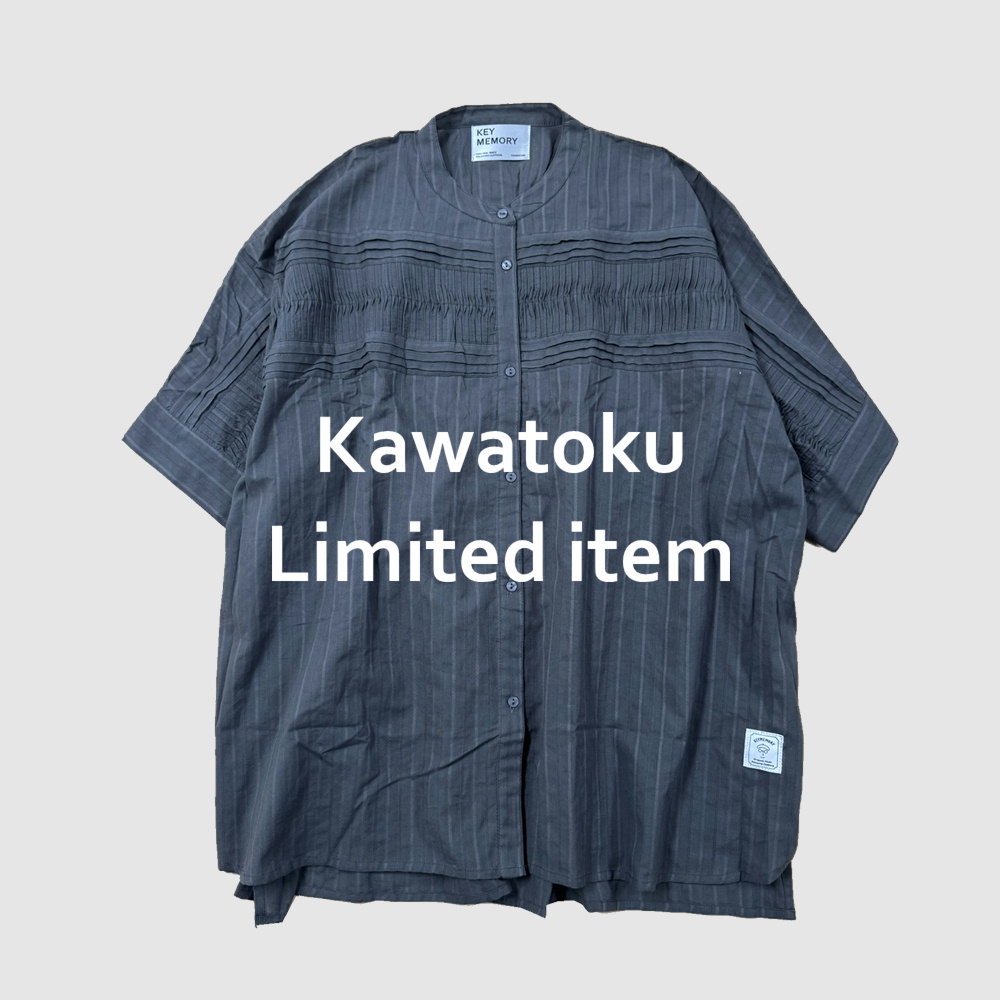 今回の川徳POPUPイベントでは、川徳とのコラボアイテムを限定販売!!胸元ストライプ状のドビー織と繊細なピンタックが映える、表情豊かなブラウス。軽やかさと程よいハリ感で体のラインを拾いすぎず、快適な着心地。前後差のある丈感と背面ギャザーで、パンツにもスカートにも好相性。季節の変わり目にも活躍します。こちらの商品は数に限りがございますので、お早めに!【KAWATOKU×KEYMEORY 限定ブラウス】