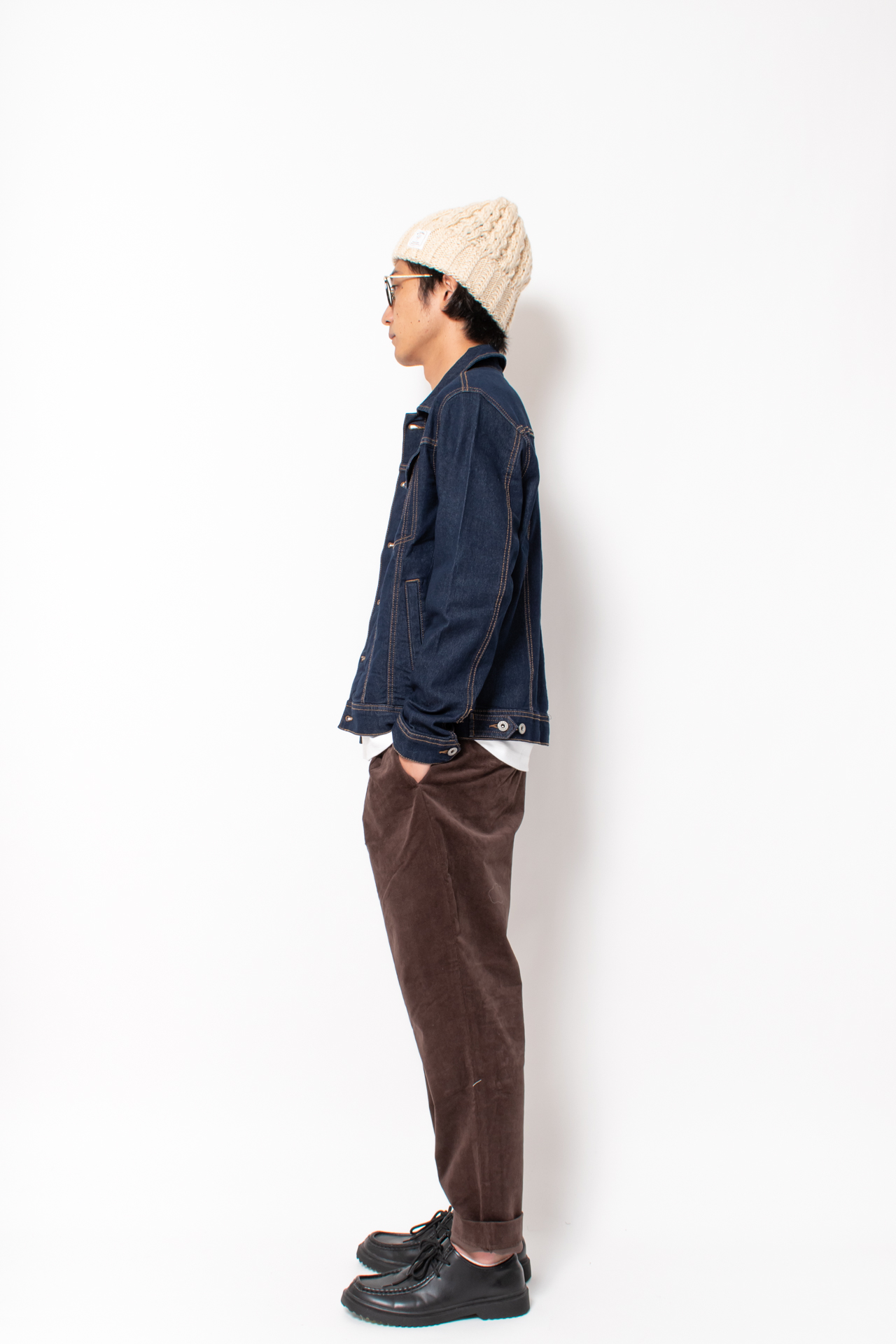 生地はやや薄手の為、コートやジャケットの下に