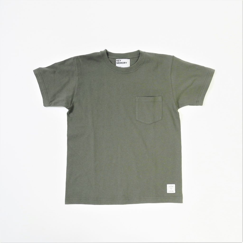 上のポケットTシャツの色違いで少しくすんだグリーン。