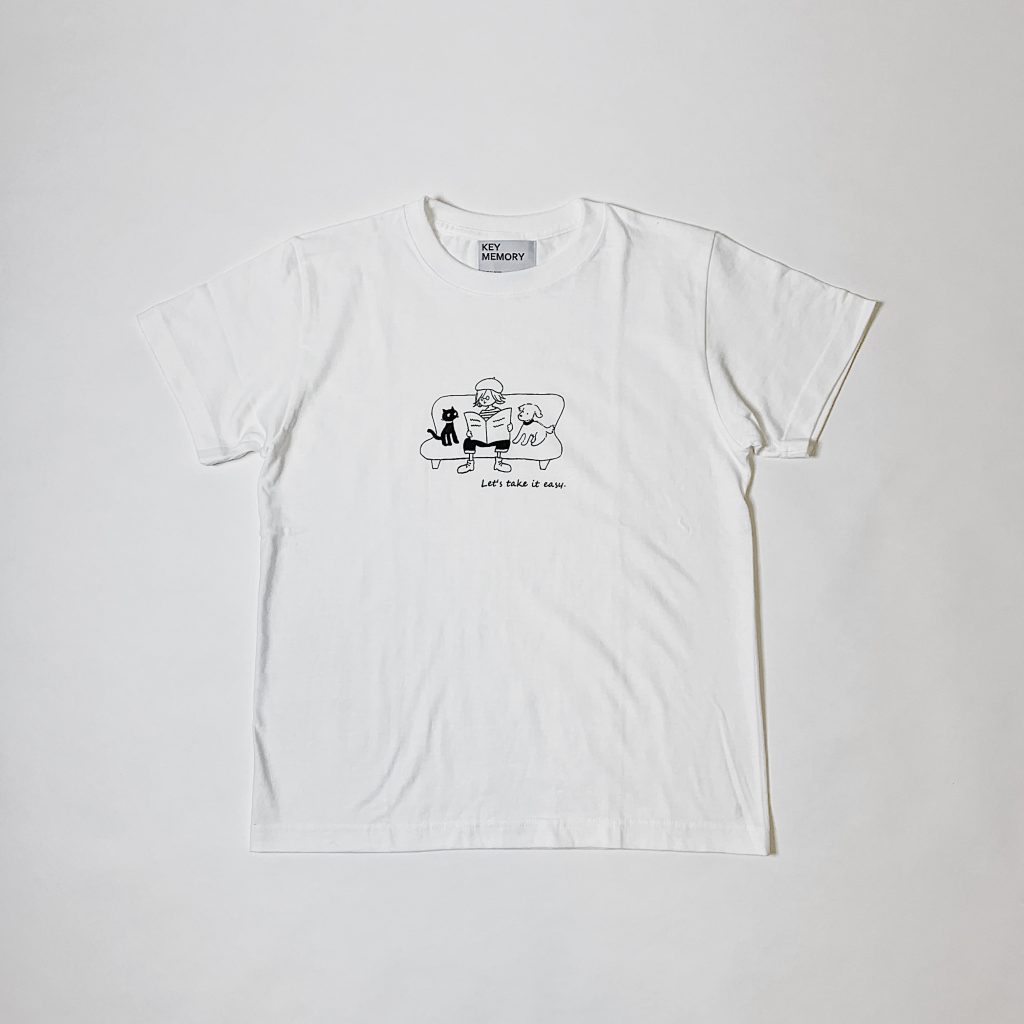 犬と猫のイラストが描かれているKEY MEMORYで長く愛されている一番人気といっても過言ではないイラストTシャツ。
