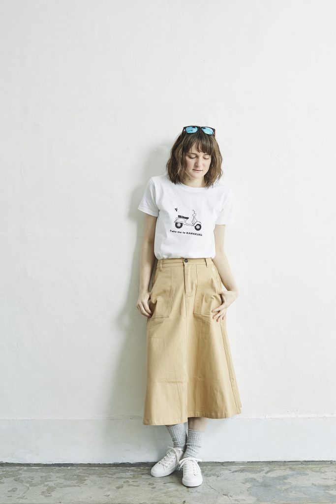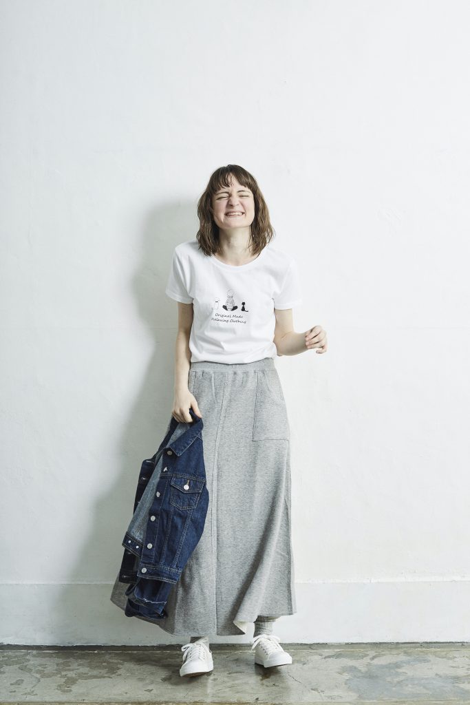 存在感のあるイラストはシンプルなコーディネートで着ていただくと、しっかり1枚でサマになります。