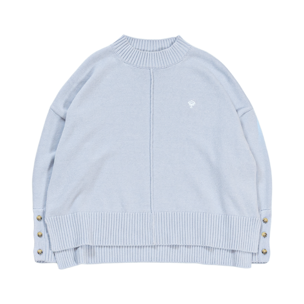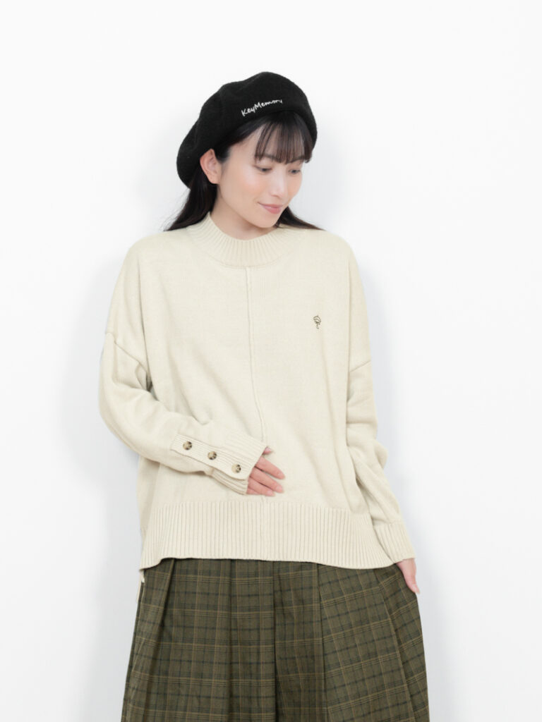 首元は高すぎないリブハイネックで、ハイネックが苦手な方にも取り入れやすいデザイン。裾は太めリブ+スリット入りで、腰まわりをすっきり見せてくれます。袖口のボタンとスリットが、さりげないアクセントに。綿×アクリル素材で、チクチクせずやさしい着心地も魅力です。カラーは NATURAL / NAVY / BLUE の3色展開。カジュアルにもきれいめにも使える、この冬頼れるニットです。