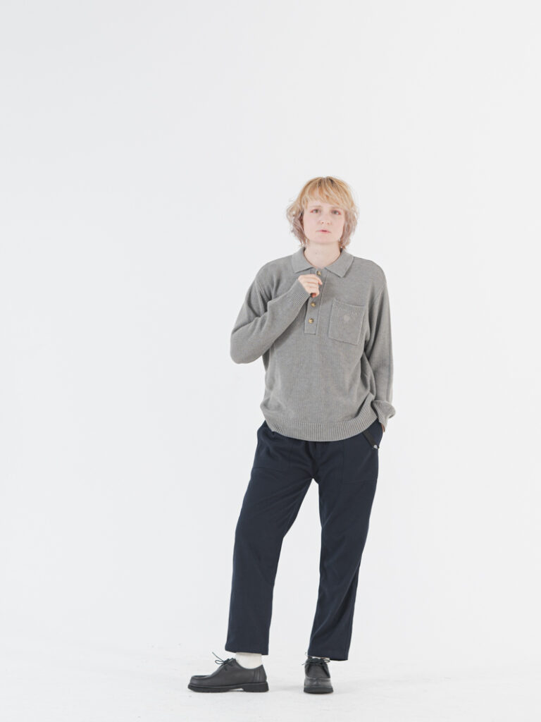 季節の変わり目にも活躍する、鹿の子ニットポロシャツ。夏にご好評いただいたポロシャツが、今回は長袖ニット仕様で、ユニセックスデザインとして新たに登場です。ベーシックなアイテムでありながら、どこか懐かしさを感じさせる長袖ポロ。鹿の子編みでさらっとした着心地ながら、ほどよくリラックス感のあるシルエットに。厚手になりすぎないよう、生地のボリューム感にもこだわったデザインです。襟付きできちんと感を演出しつつ、ニットならではの柔らかさもある1枚。袖口と裾はリブ仕様で、すっきりまとまりのある印象に仕上げました。胸元のボタンにはマーブルデザインを採用し、さりげないアクセントをプラス。ボタンを開けてTシャツやタートルネックを合わせるレイヤードスタイルもおすすめです。胸元にはポケットとワンポイント刺繍を施しました。ドライなタッチの糸と鹿の子編み地で、秋口から春先まで長くお使いいただけます。ほどよい透け感もあり、重たくなりすぎず季節をまたいで活躍します。普段からきちんと感が欲しいシーンまで活躍するニットです。