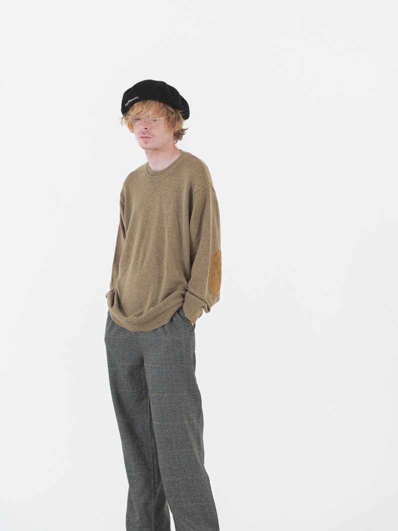 どこか懐かしく、今の気分にもフィットするデザイン性とサイズ感にこだわったニットが入荷しました。この冬のKEYMEMORYのテーマ「ニューレトロ」の中でもおすすめなのが、“エルボーパッチ”を施したこちらのニットです。レトロを感じさせるのは、肘部分にあしらわれたフェイクスウェードのパッチ。クラシカルなプルオーバーデザインに、首元と裾の二重リブや程よくルーズなシルエットで「ニュー」な要素をプラスしました。Tシャツと合わせてラフに着こなしたり、シャツやタートルネックと重ねてきれいめにも。着方次第で表情が変わる、着回し力の高い1枚です。ボリュームが出すぎない程よい厚みと、チクチクしないやさしい肌触りも魅力。