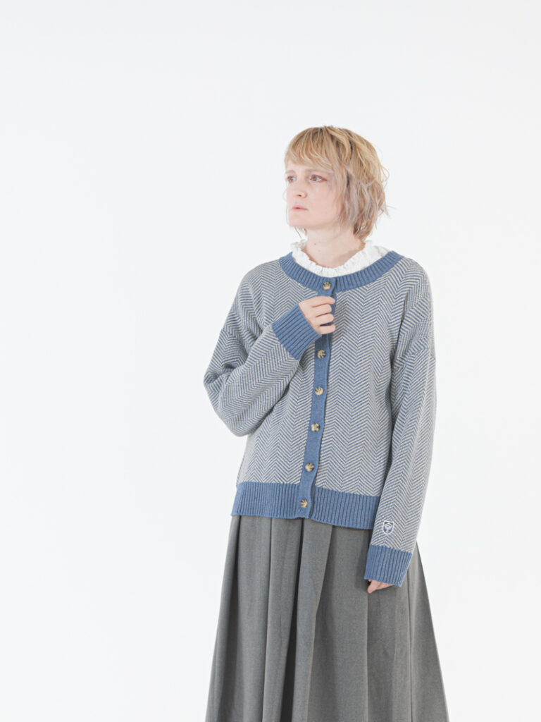 2way herringbone cardigan BLUE