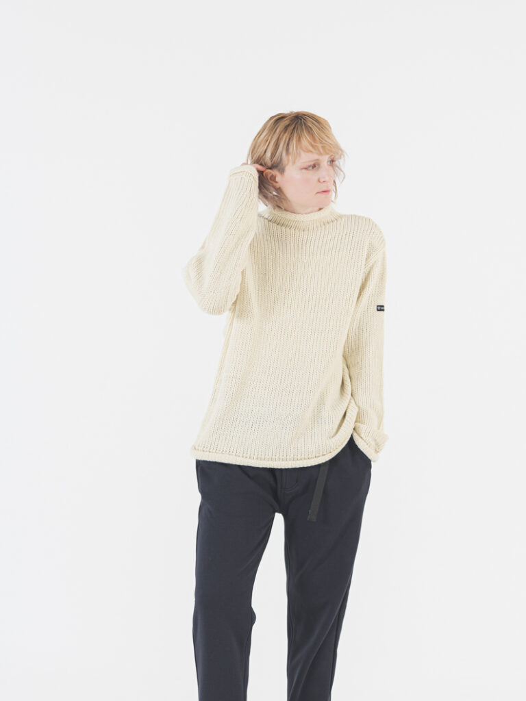 着るだけで様になるセーラーカラーのプルオーバーニット。冬のベーシックアイテムと合わせて、ワンポイントとしても活躍する1枚です。今年は懐かしさを残しつつ、ゆるっとしたサイズ感にアップデート。襟元のシルエットやジップの開け閉めで表情が変わり、軽やかな糸とチクチク感のない素材で快適に着用いただけます。袖口と裾は柔らかめのリブでまとまりをプラス。ユニセックス仕様でカラーもお好みで選べます。“Corduroy tuck pants”や“Wool like pants”とのコーデは冬のお出かけにおすすめで、ギフトやクリスマスプレゼントにも最適です。