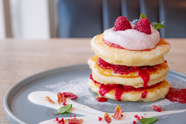 イチオシメニューは、2段のバスケットにパンケーキとトッピングが盛り付けられていて、見た目が可愛い「ピクニックパンケーキ」です。