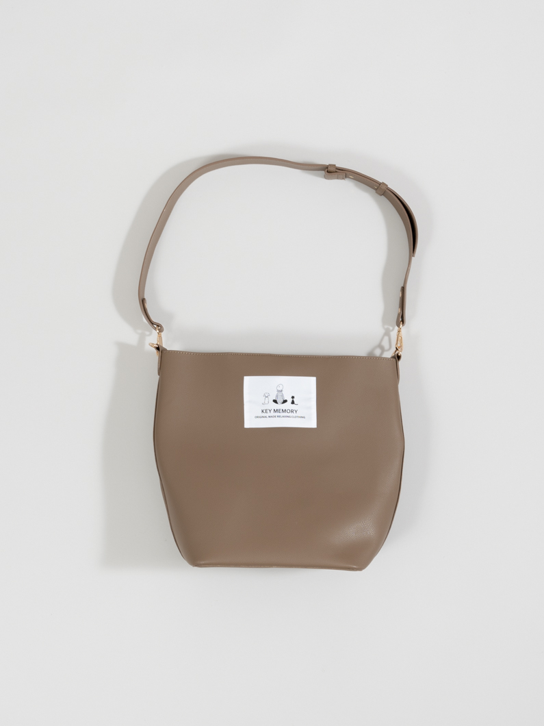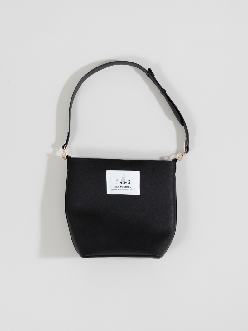 フェイクレザーを使用したシンプルなワンハンドルトートバッグ。可愛い大きなネームタグが前に縫い付けられたデザイン。ワンハンドルで大人っぽく、高見えする洗練されたデザインとなっております。縦長なシルエットで、中にはペットボトルを挟む輪っかや、コンパクトながら収納力もしっかりある優れもの。シーズン問わずお使いいただけるオススメのアイテムとなっております。