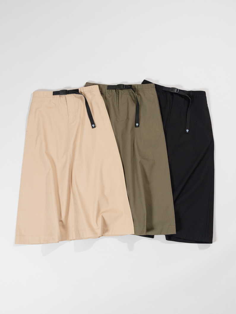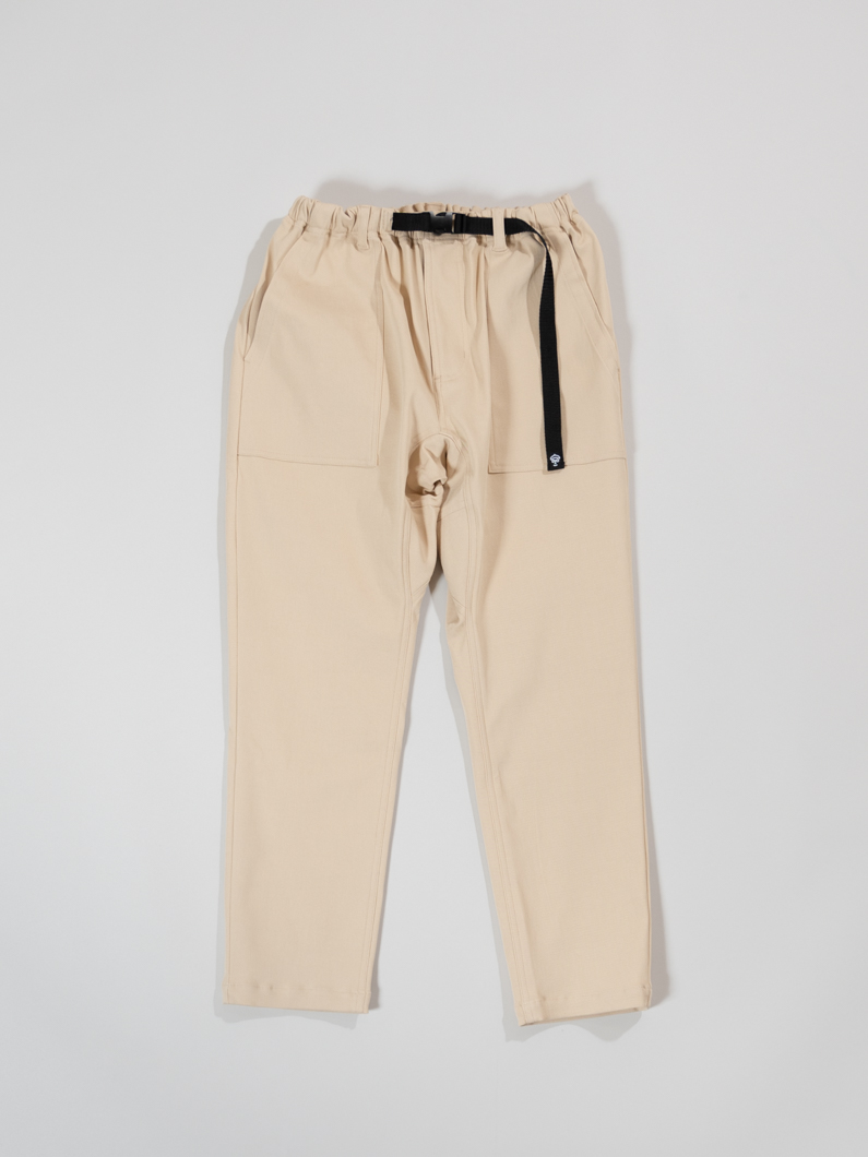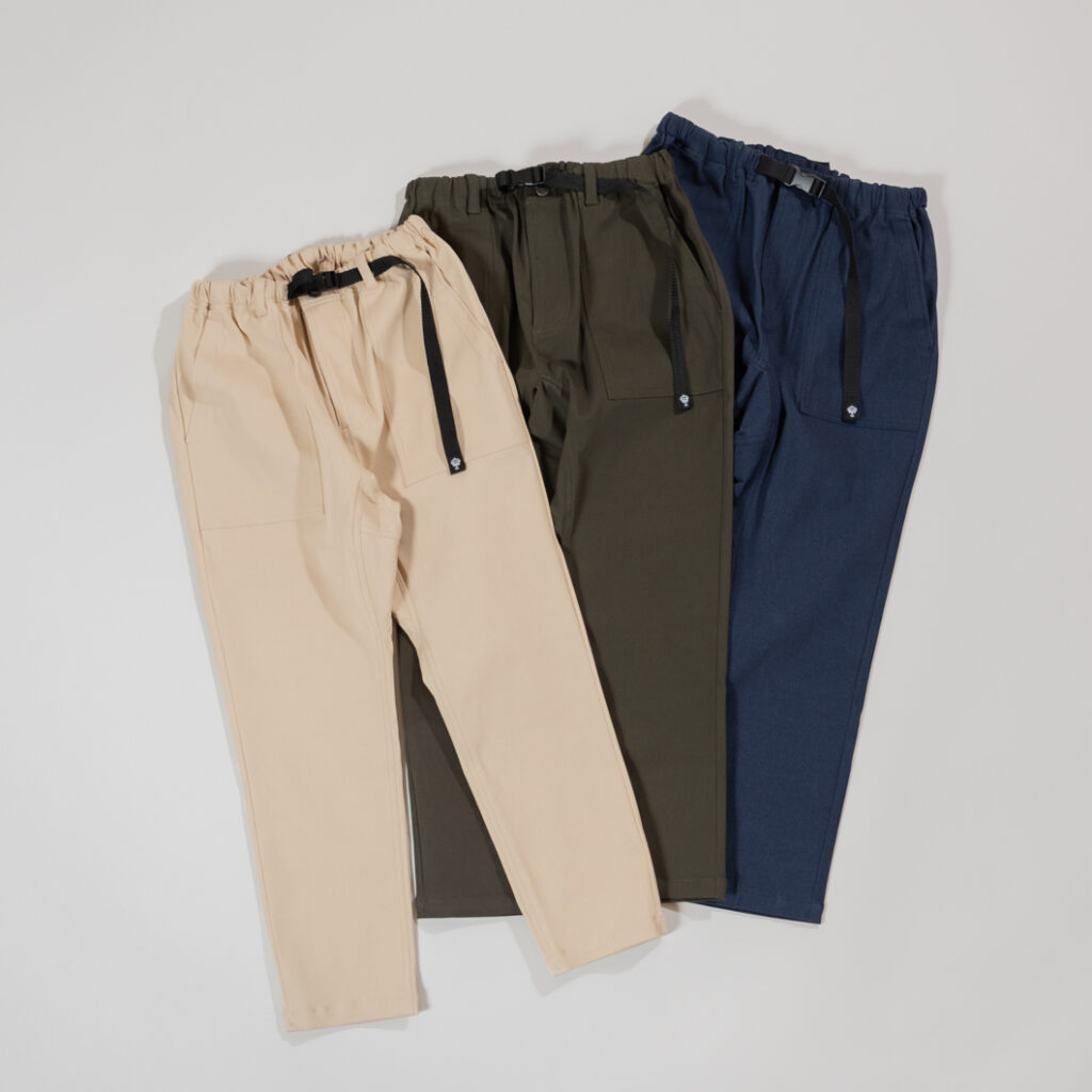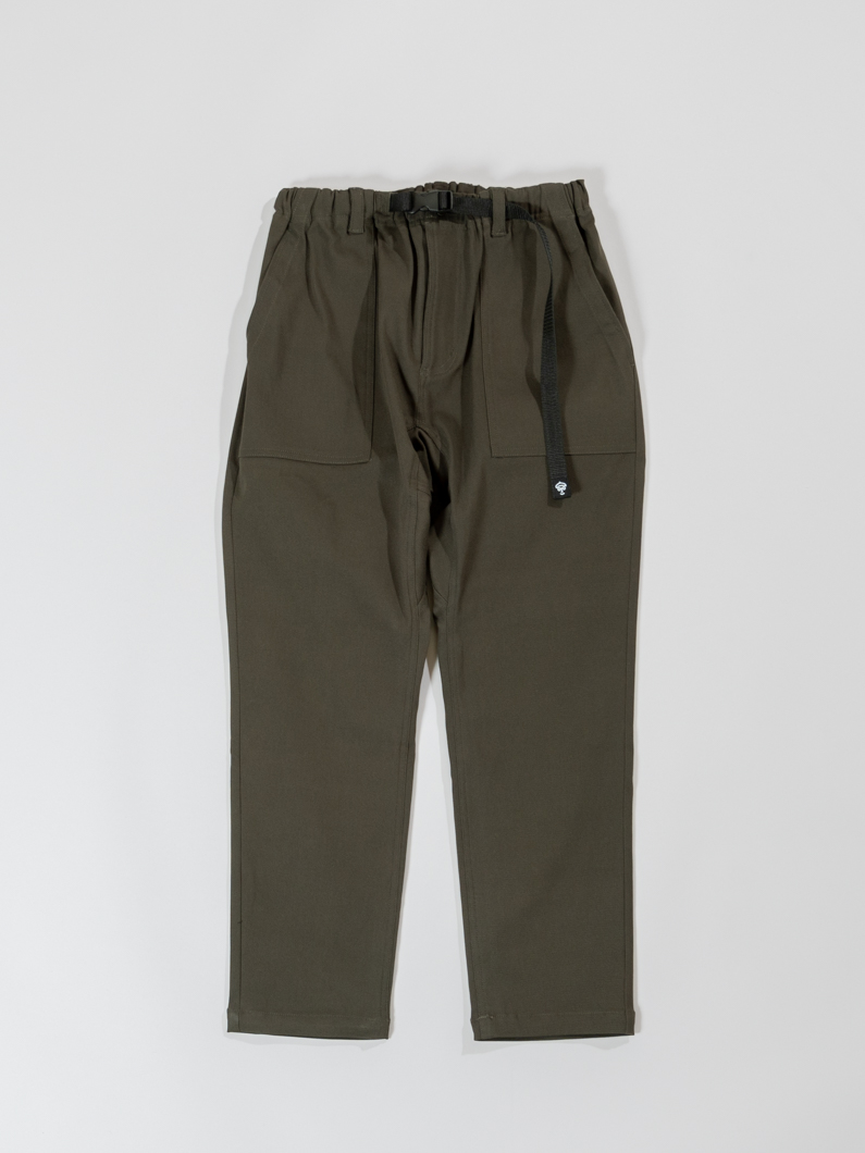 ストレッチ抜群のクライミングパンツ。生地は縦にも横にも伸び、抜群の伸縮性を誇る4WAYスーパーストレッチ生地を採用し、圧倒的な伸縮性でストレスフリーな履き心地。さらに股下のガゼットクロッチにより股下の可動域が広がり、180度の開脚も突っ張ることなくストレスフリー。まさに名前の通りこのパンツで山を登れます。両サイドの大きなポケットがアクセントで、ウェービングベルトがメリハリのある着こなしのアクセントをプラス。ウエストはゴムと付属ベルトで調節できる為、着脱も簡単で楽ちんです!