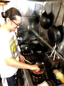 鈴木さん店内コンセプトは「欧米にあるジャパニーズレストラン」をイメージしてます。小上がりがあったり、壁に紙に書いた商品を張ったり、提灯あったりと「日本」を感じられるものをちりばめてます(笑)