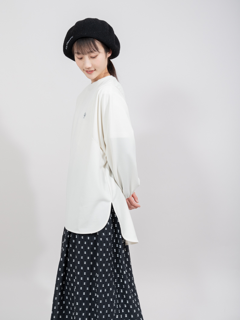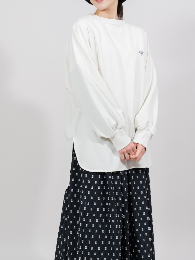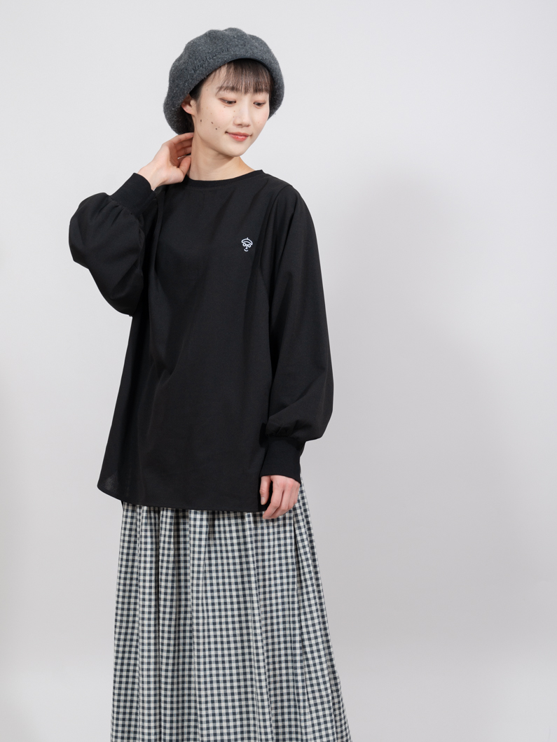 袖のボリュームがポイントのチュニック長袖Tシャツ。
