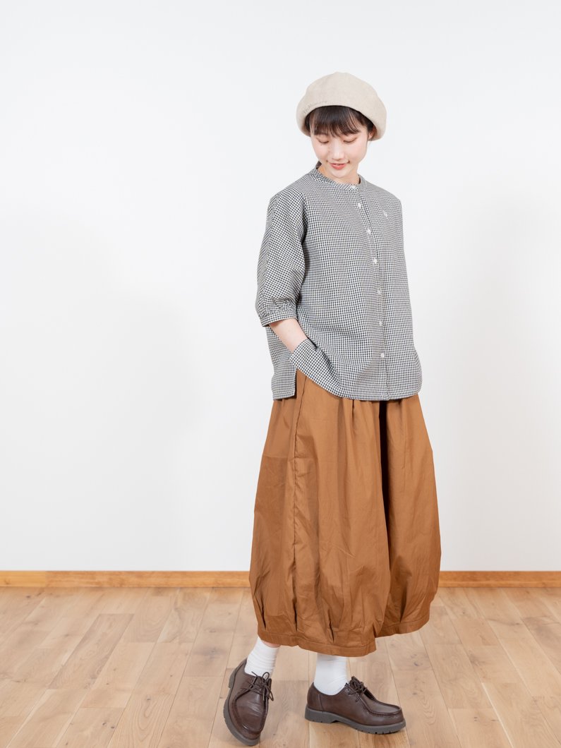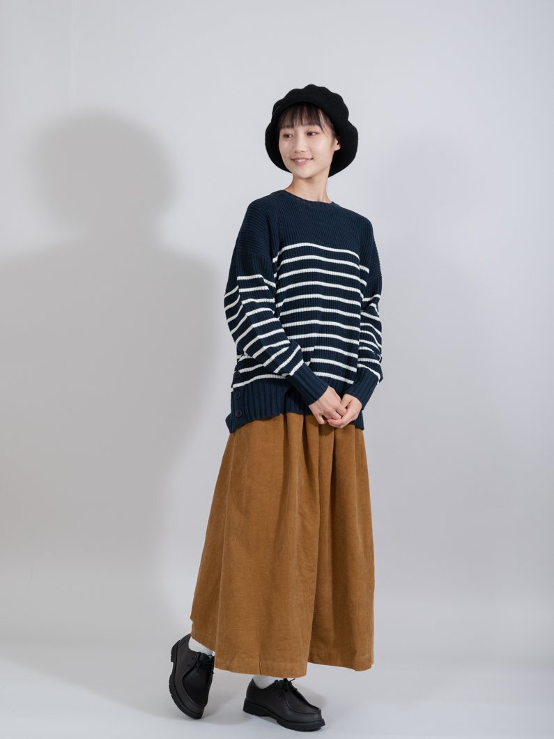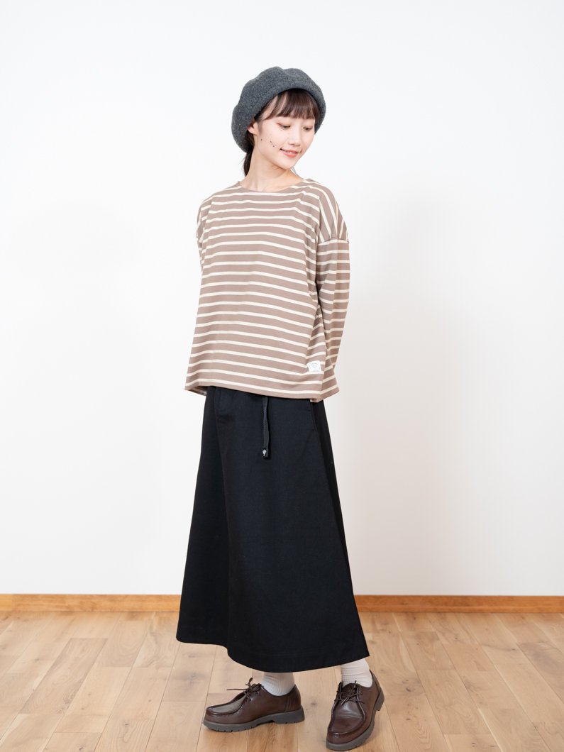 パンツにもスカートにも合わせられるので、コーディネートを選ばずに気軽に着られるのが魅力です。