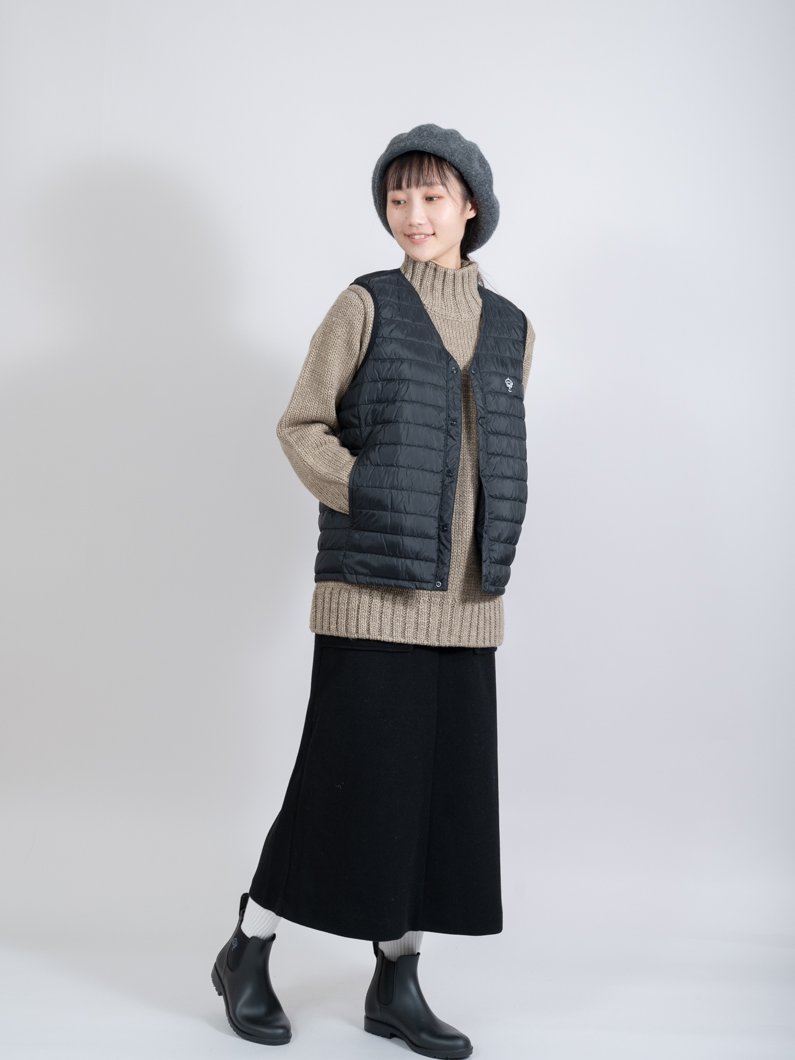 キルティングジャケットのように、アウターにもインナーにもなるダウンベストも、この時期におすすめのアイテムです。