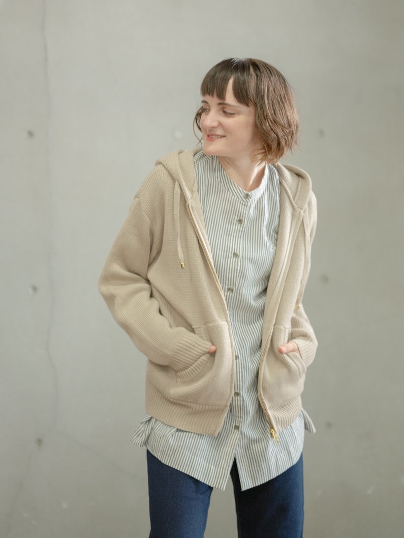 トレンチコートの中に着て暖かさをプラスしたり、厚手のスウェットの上に着て思いっきりカジュアルにしたりと、自在に印象を変えられます。