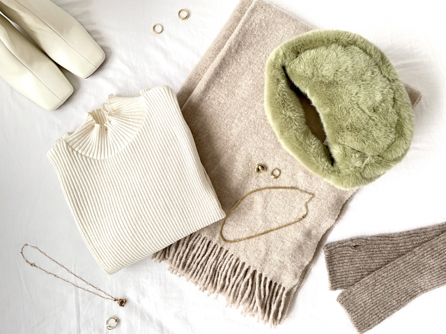 全身に取り入れるにはまだ暑苦しいですが、1点だけであれば薄着でも温かみのある印象になります。