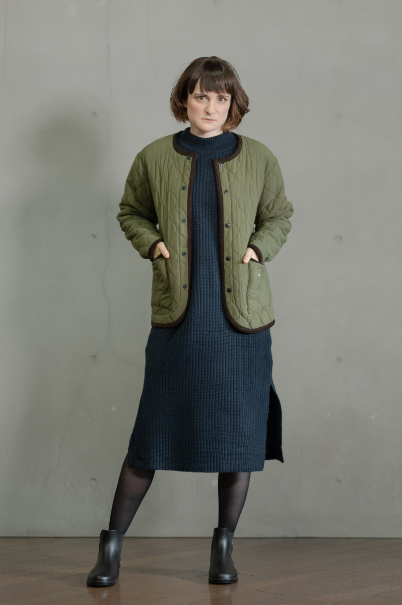 キルティングジャケットは軽くて薄いのに暖かく、羽織るだけで秋らしい装いになります。