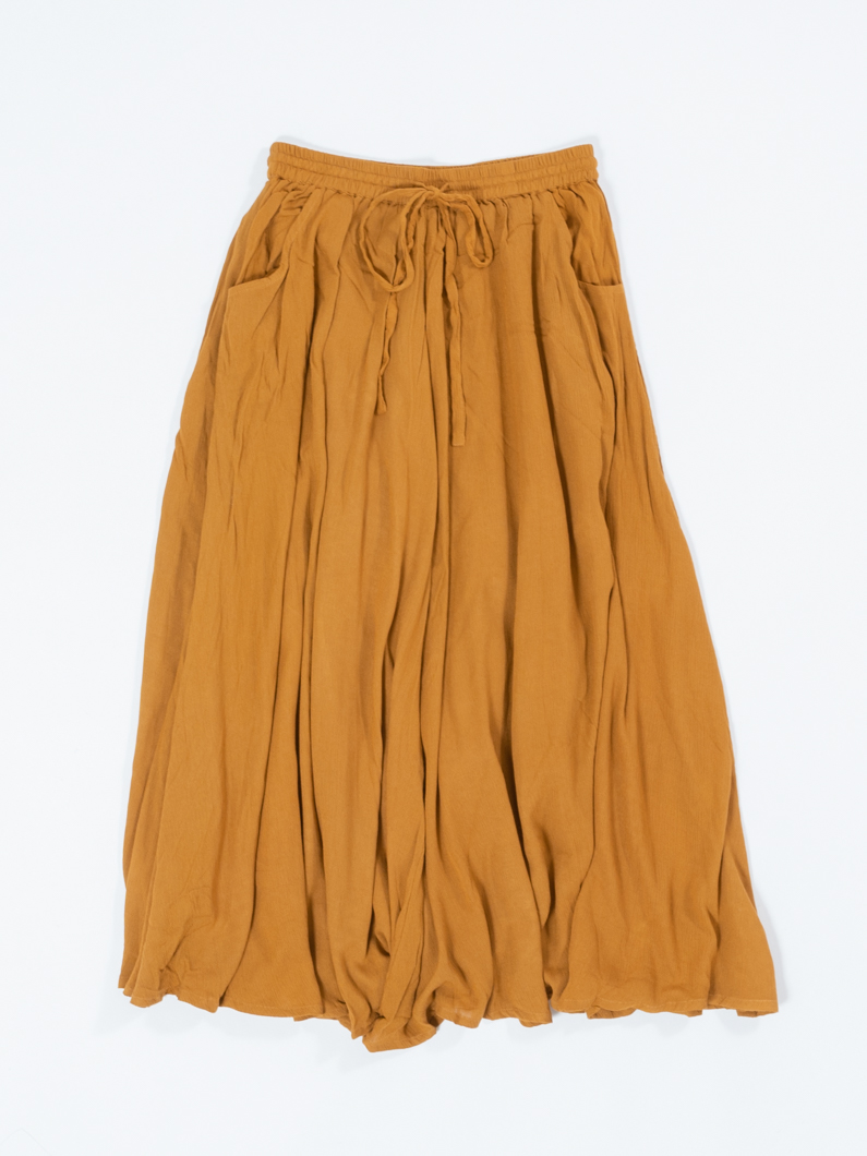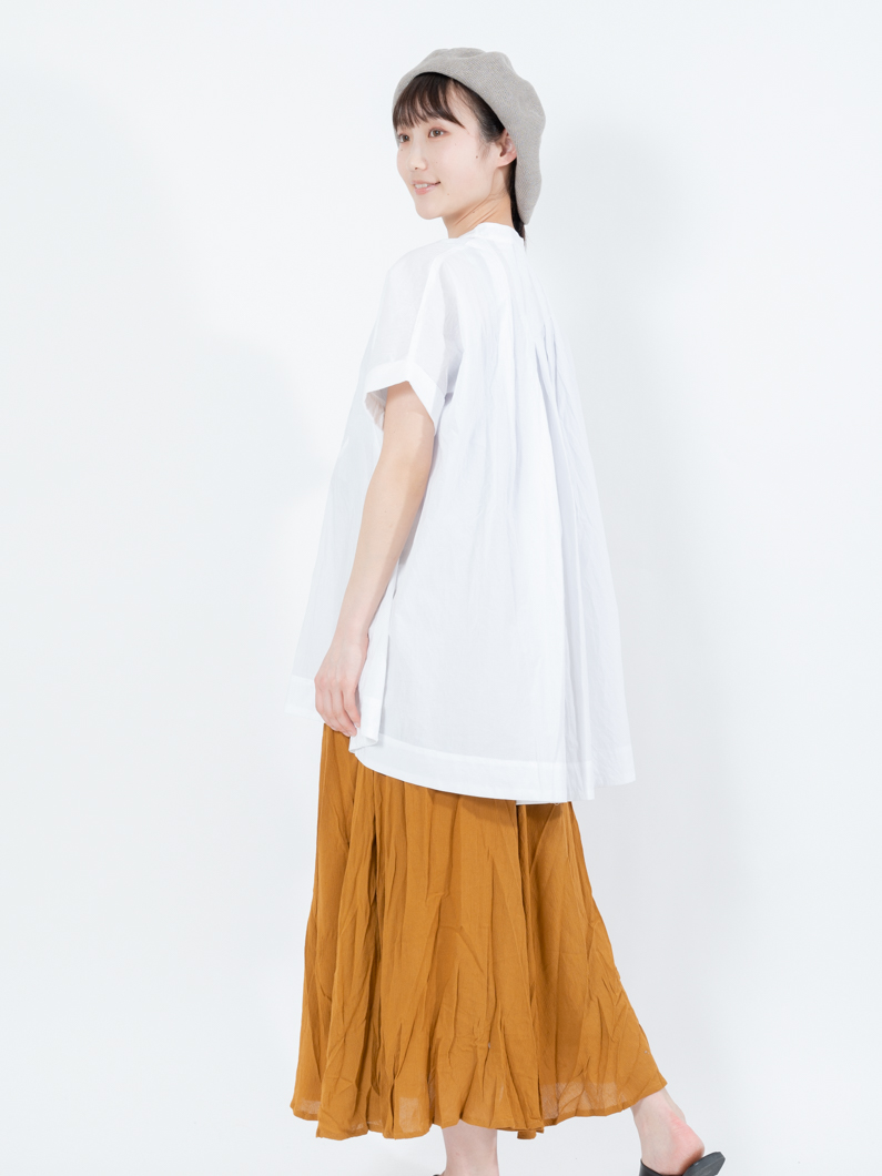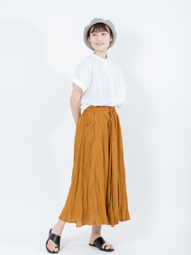 シルエットだけでも涼しさが伝わるコーディネートですが、軽い生地で揺れ方も軽やかなスカートがより季節感を演出してくれます。