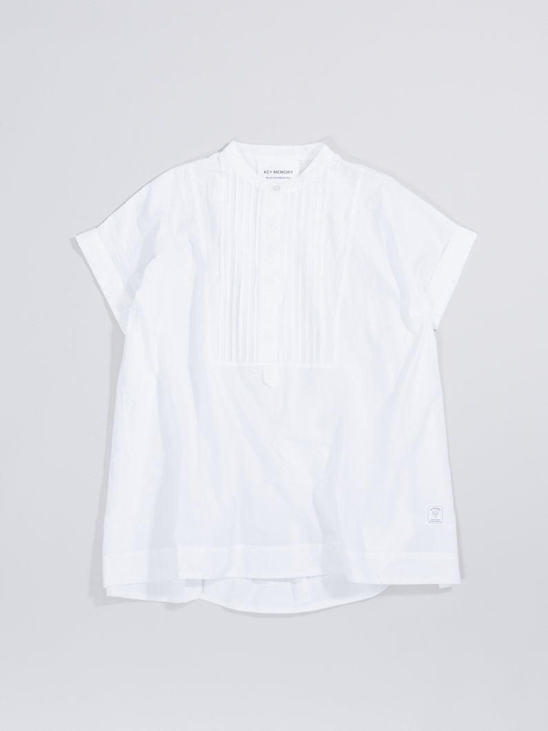 KEYMEMORYから登場したブラウスも、シンプルなデザインにピンタックが映えてきれいめなコーディネートに合わせやすいデザインになっています。