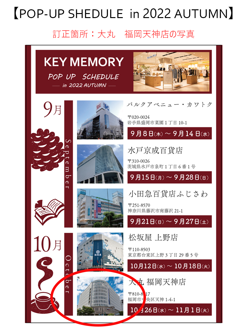 【お詫びと訂正】POP-UP SCHEDULE in 2022 AUTUMN