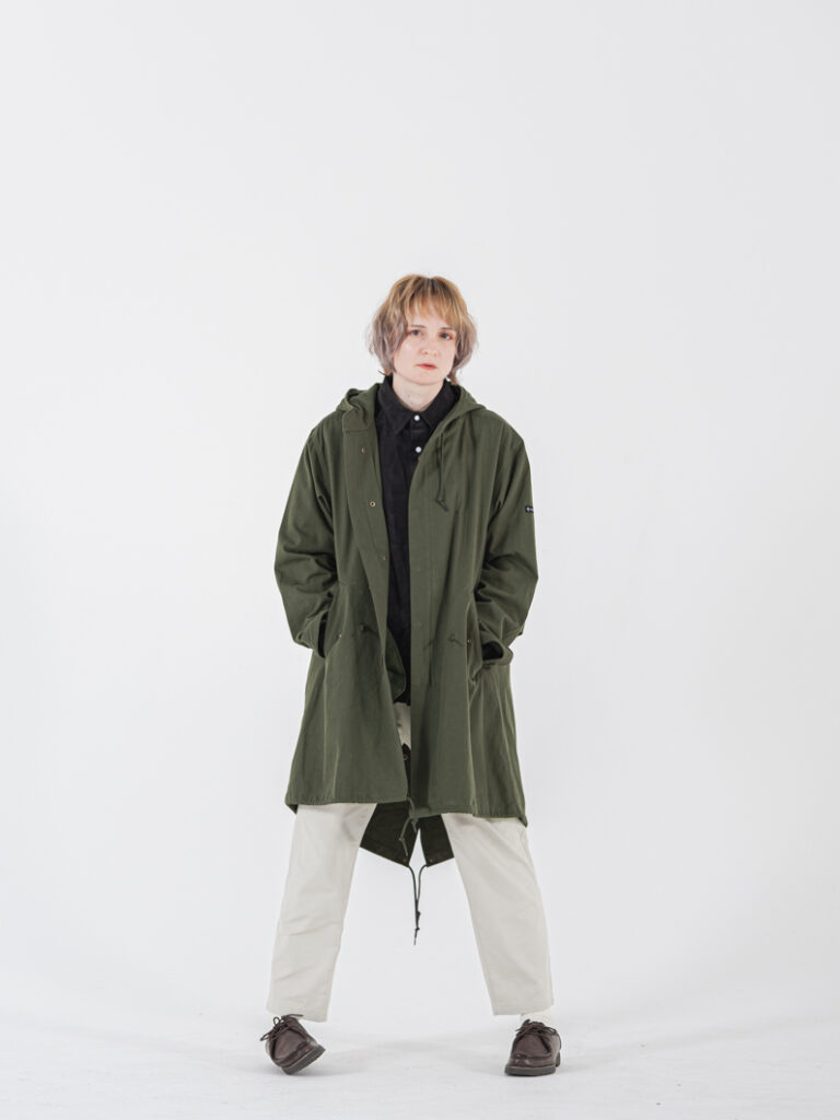 ミリタリーの名品「M-51」をベースに、フード一体型の本格仕様ながら、余計な装飾を削ぎ落としたクリーンなデザインに。