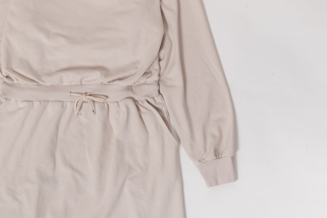 ポンチドレスはゆったりとしたサイズ感と、紐で調整可能なウエストでストレスフリーに着用できるワンピースです。