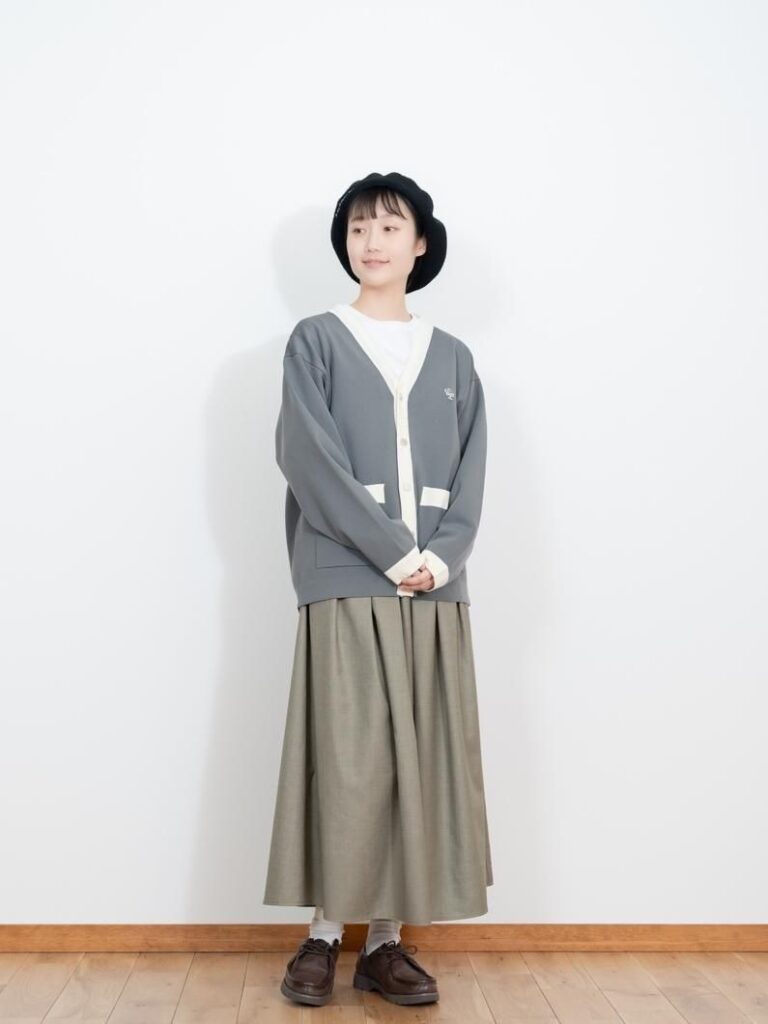 Bicolor knit cardiganのレディースおすすめスタイリング