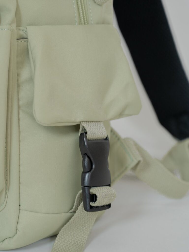 お客様からのお声が多かったショルダー紐のズレ防止ベルト付き!取り外しも可能なのでお客様のお好みでご活用ください。本体は600gと軽量で、たくさん入れても軽い背負い心地。