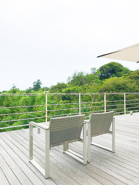 テラスから見える山々の緑に癒されながら、