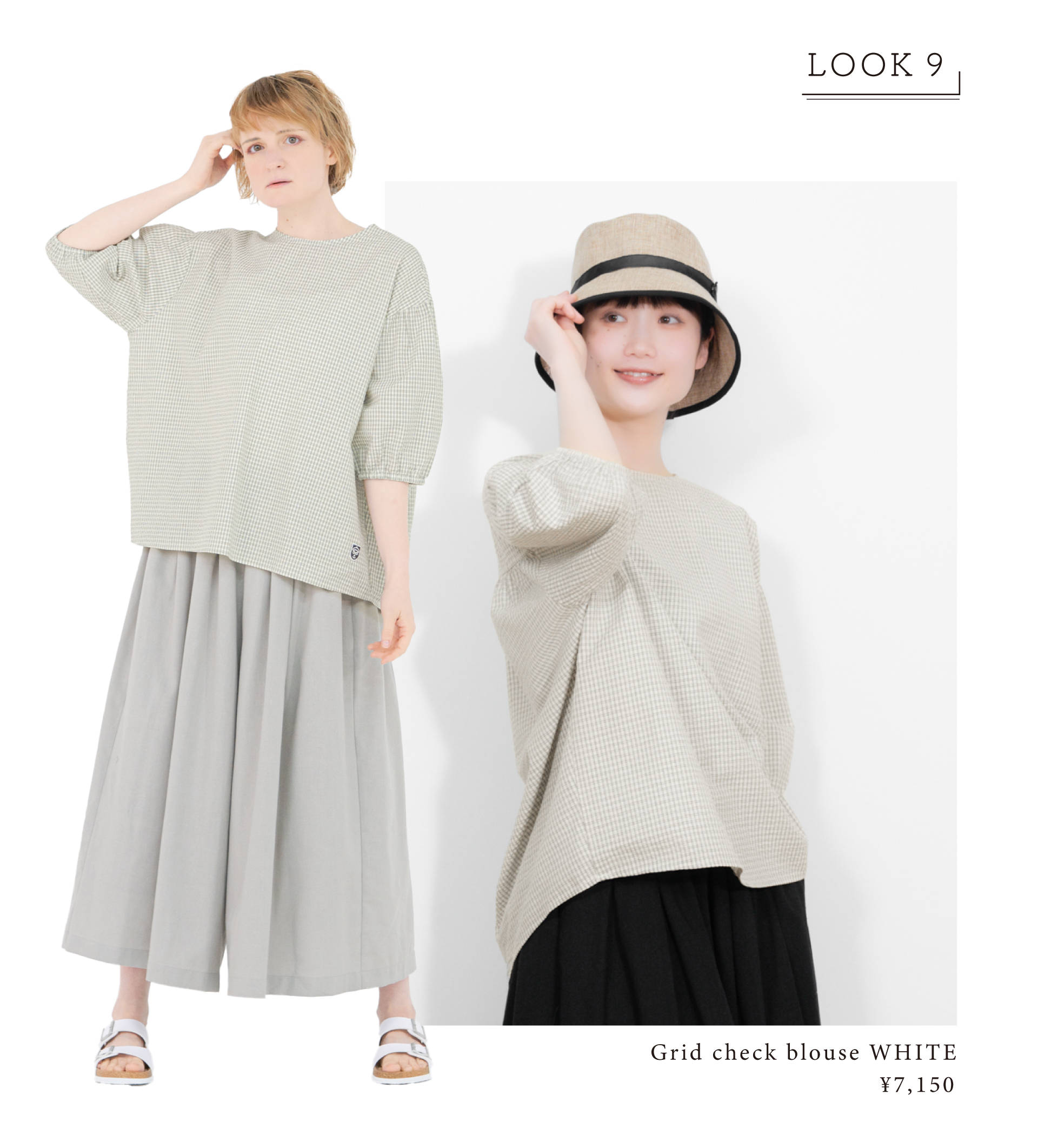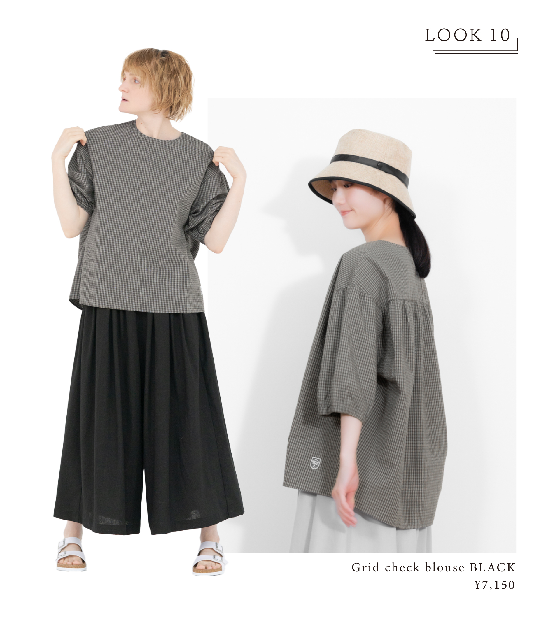 Grid check blouse