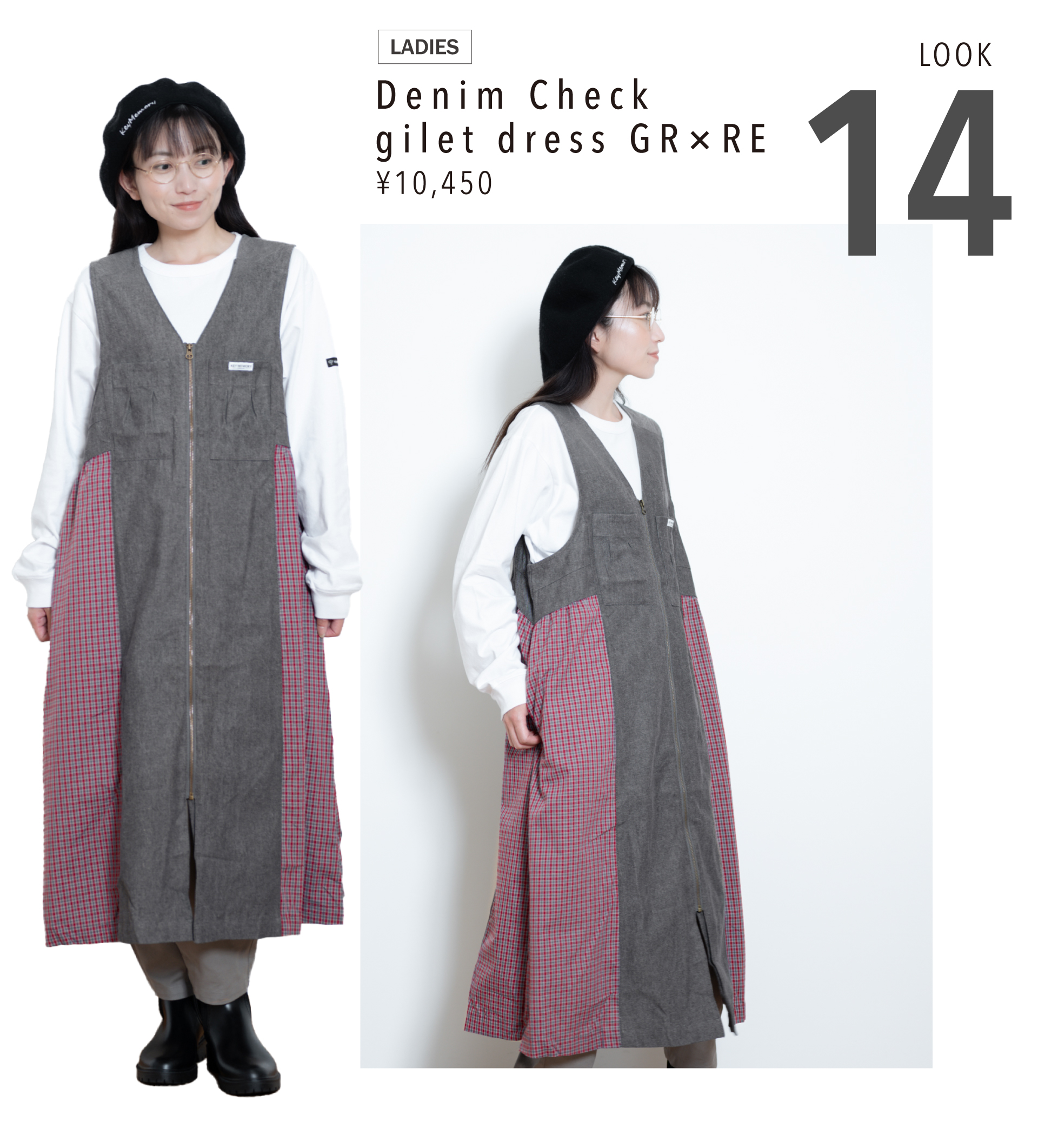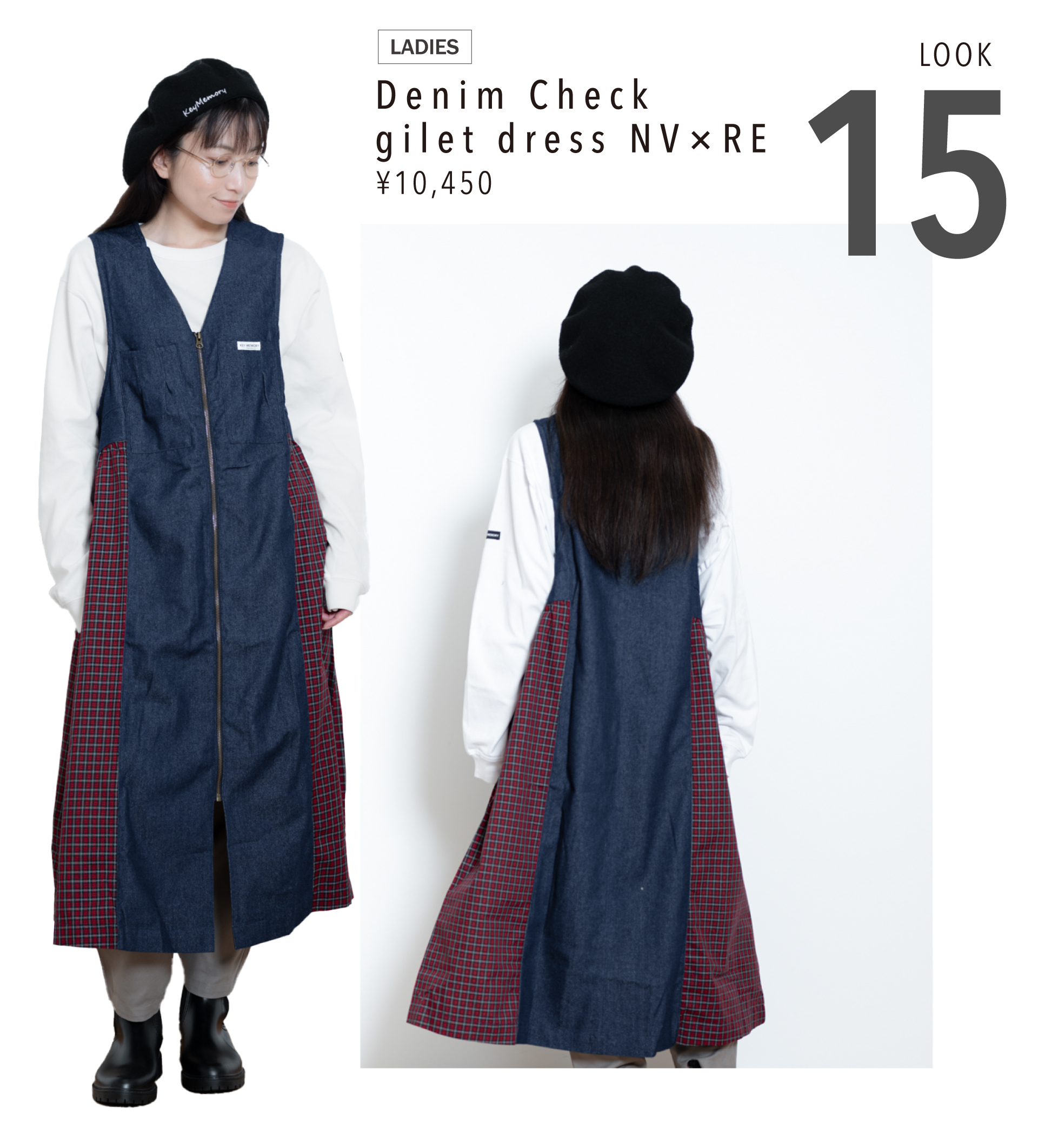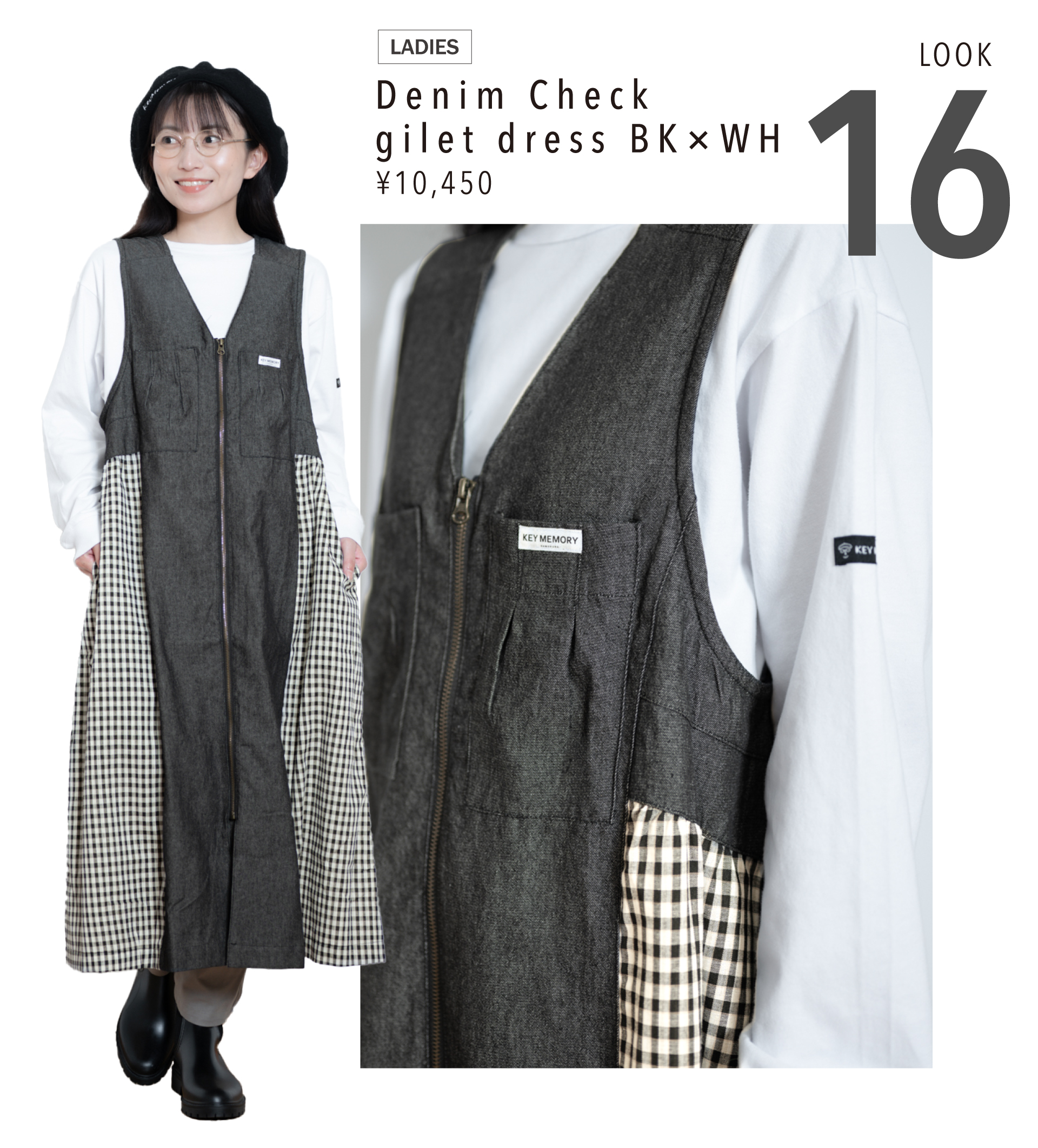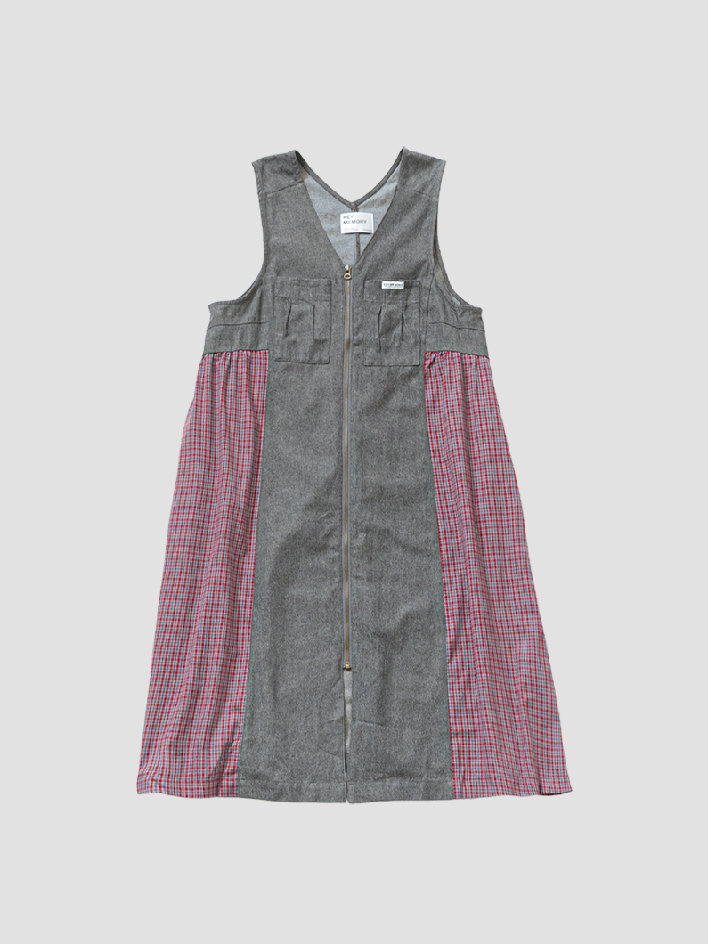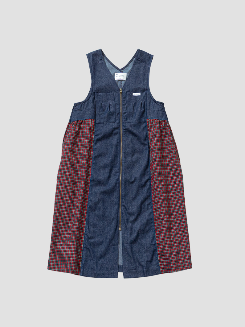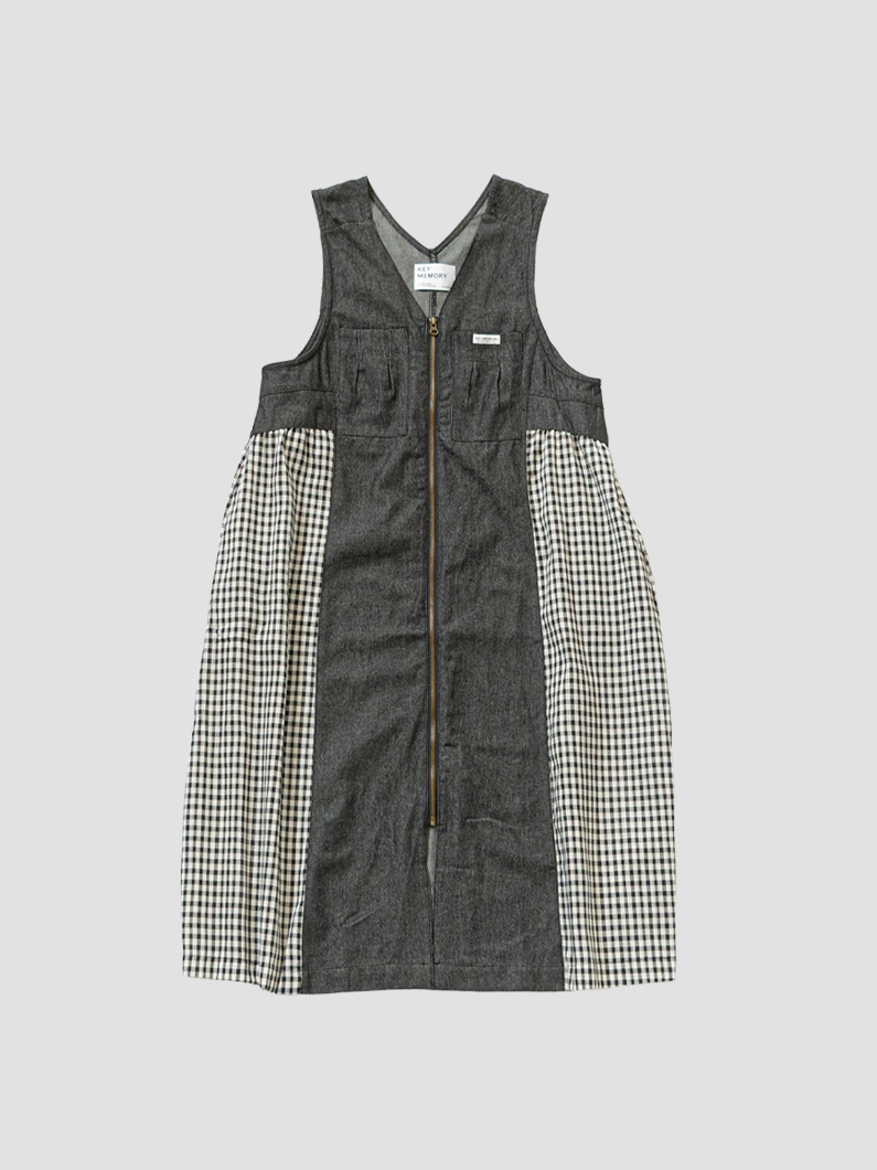 Denim check gilet dress
