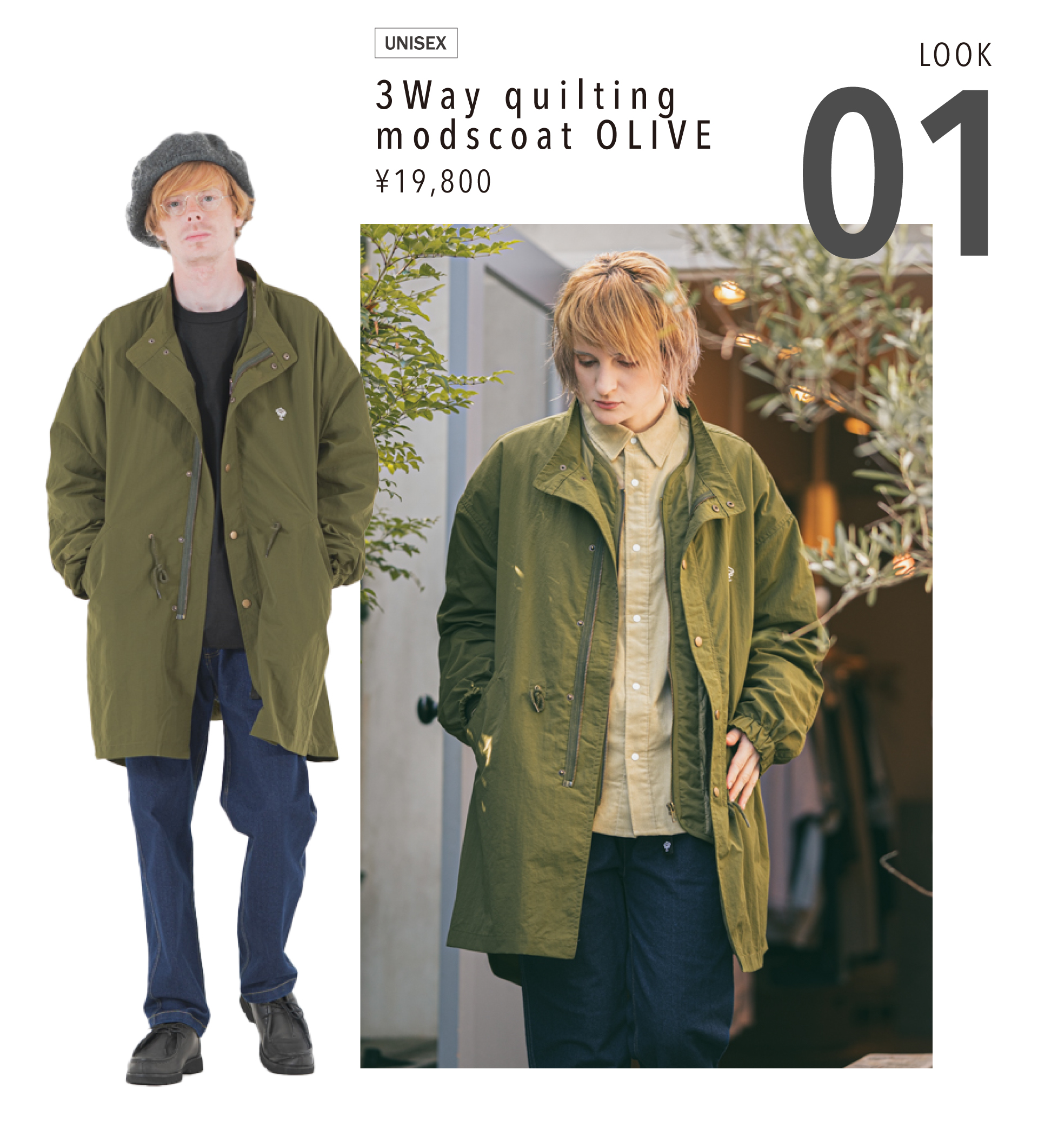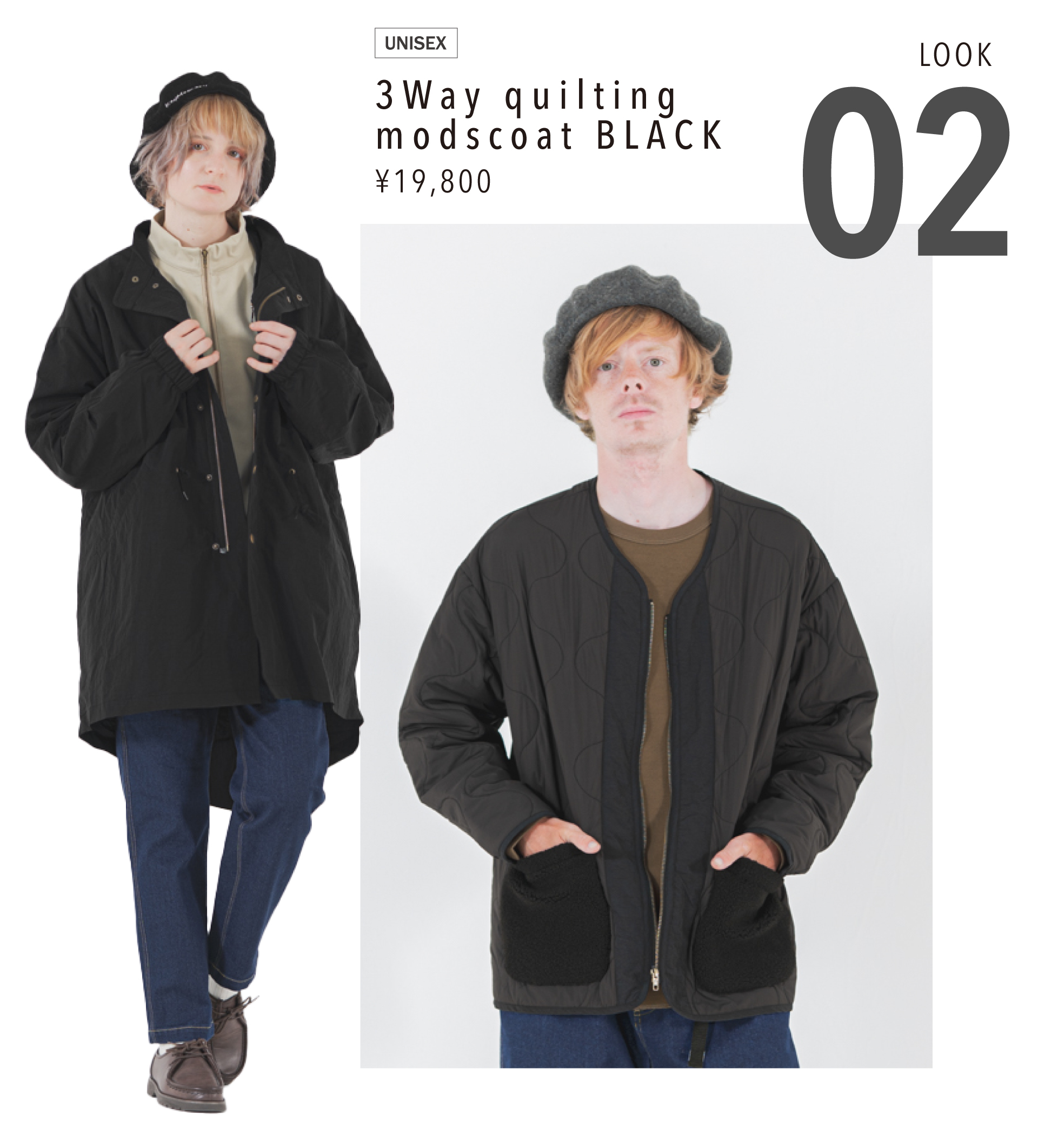 インナーにキルティングジャケットを備えた3wayモッズコートや、