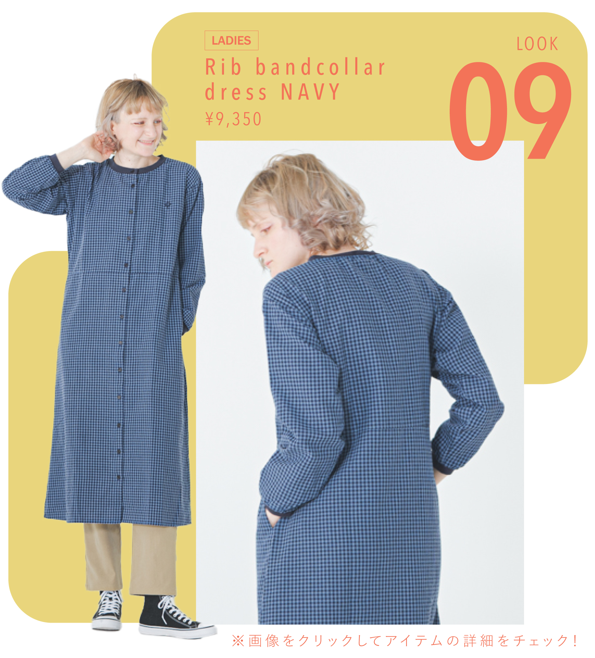 シンプルながら表情のあるリブ付きシャツワンピや、